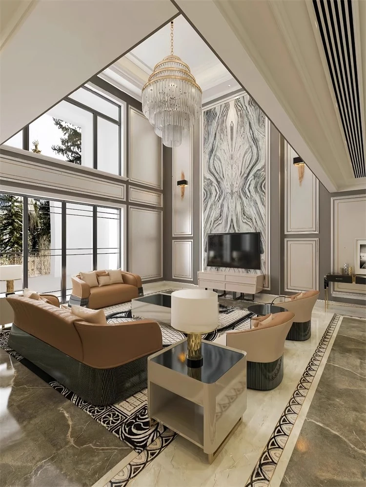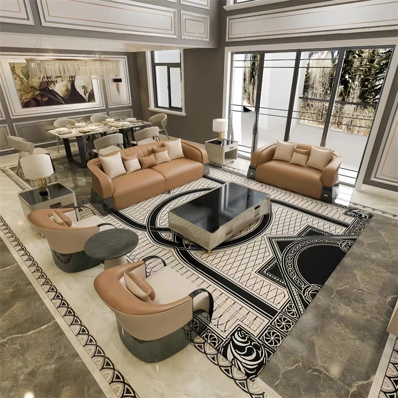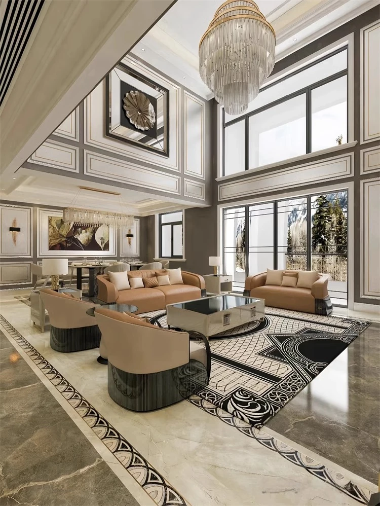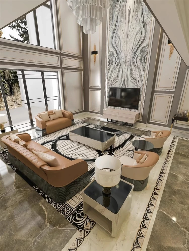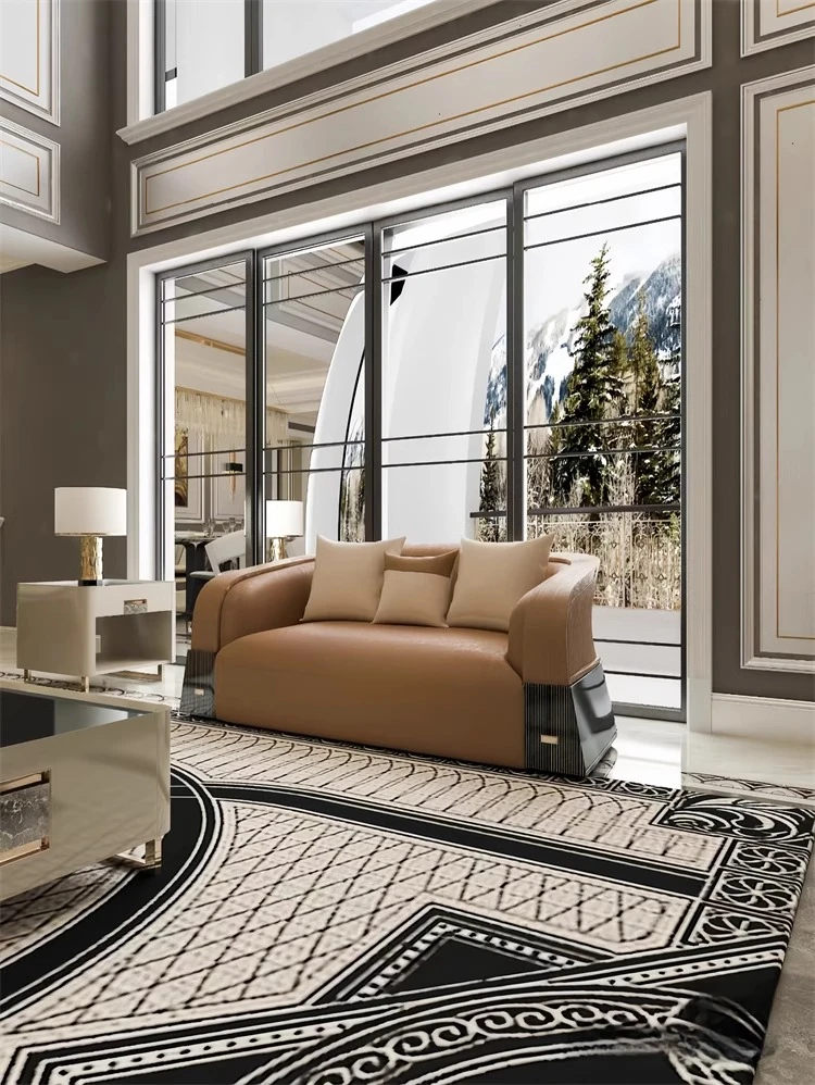 イタリアンポストモダン軽奢ソファ 高級ヴィラリビングルーム用 本革1234コンビネーション 豪華家具で贅沢なひとときを!