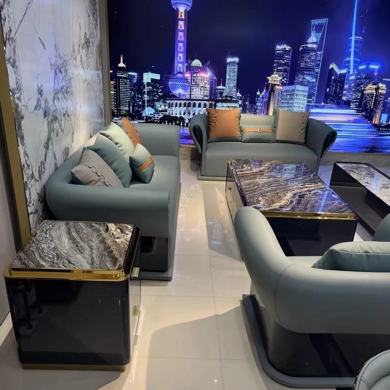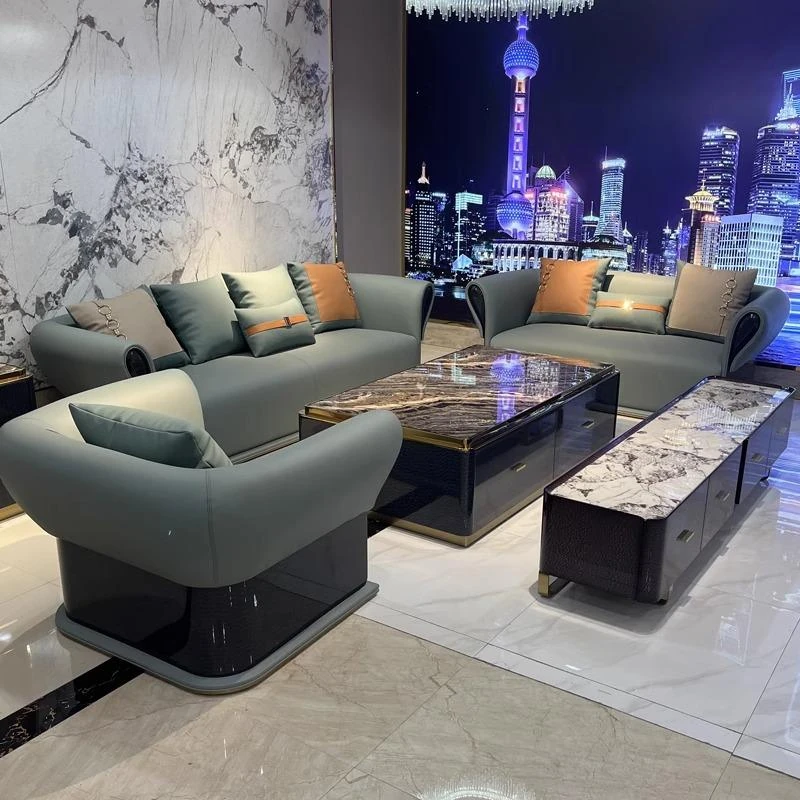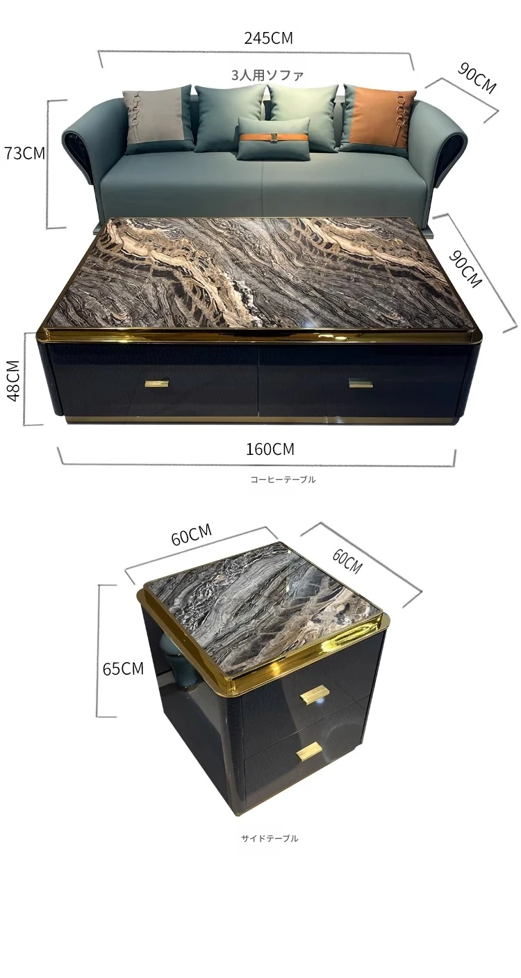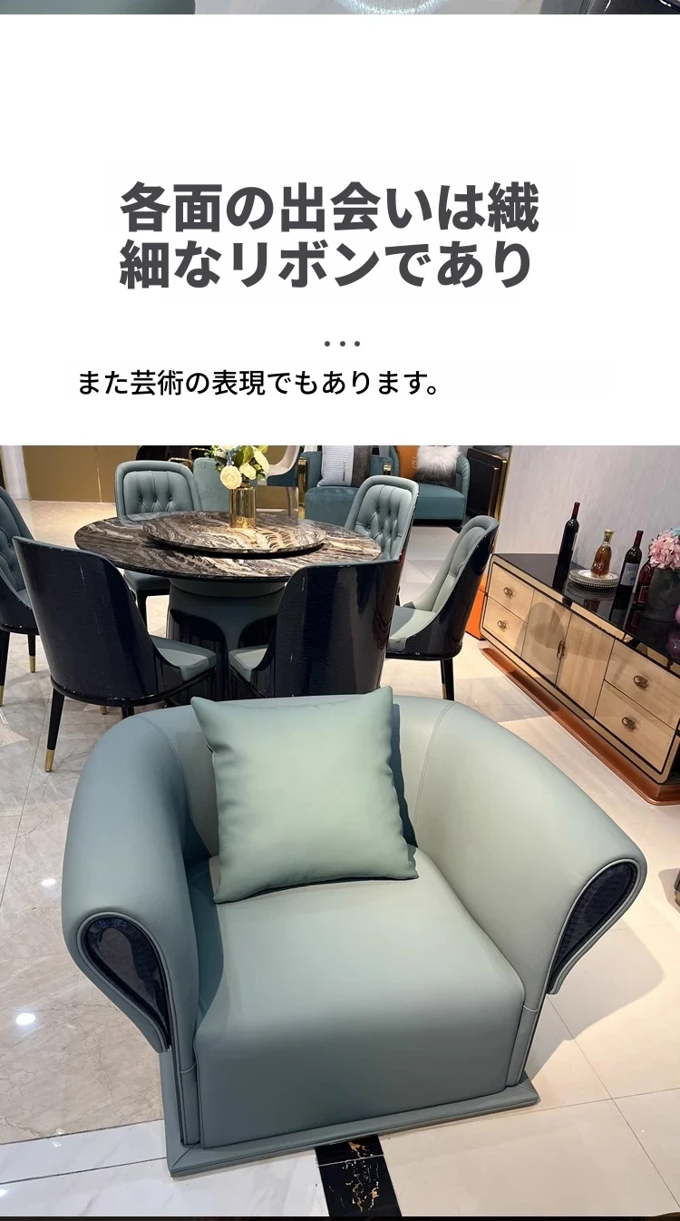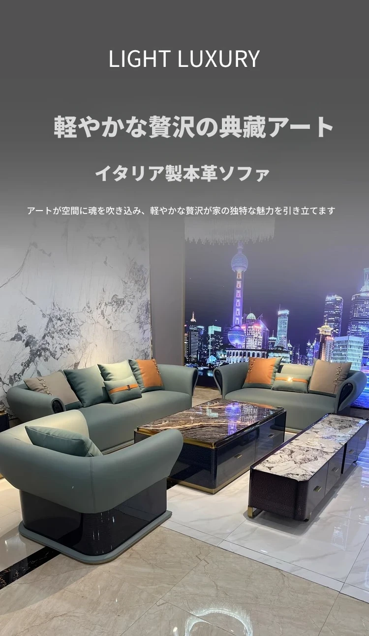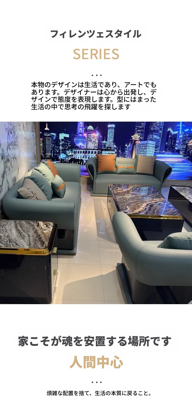 高級イタリアンラグジュアリーソファ|ヴィラリビングに最適な全室対応家具セット|贅沢な本革と無垢材使用の高品質ソファ!心地よい空間を演出します。