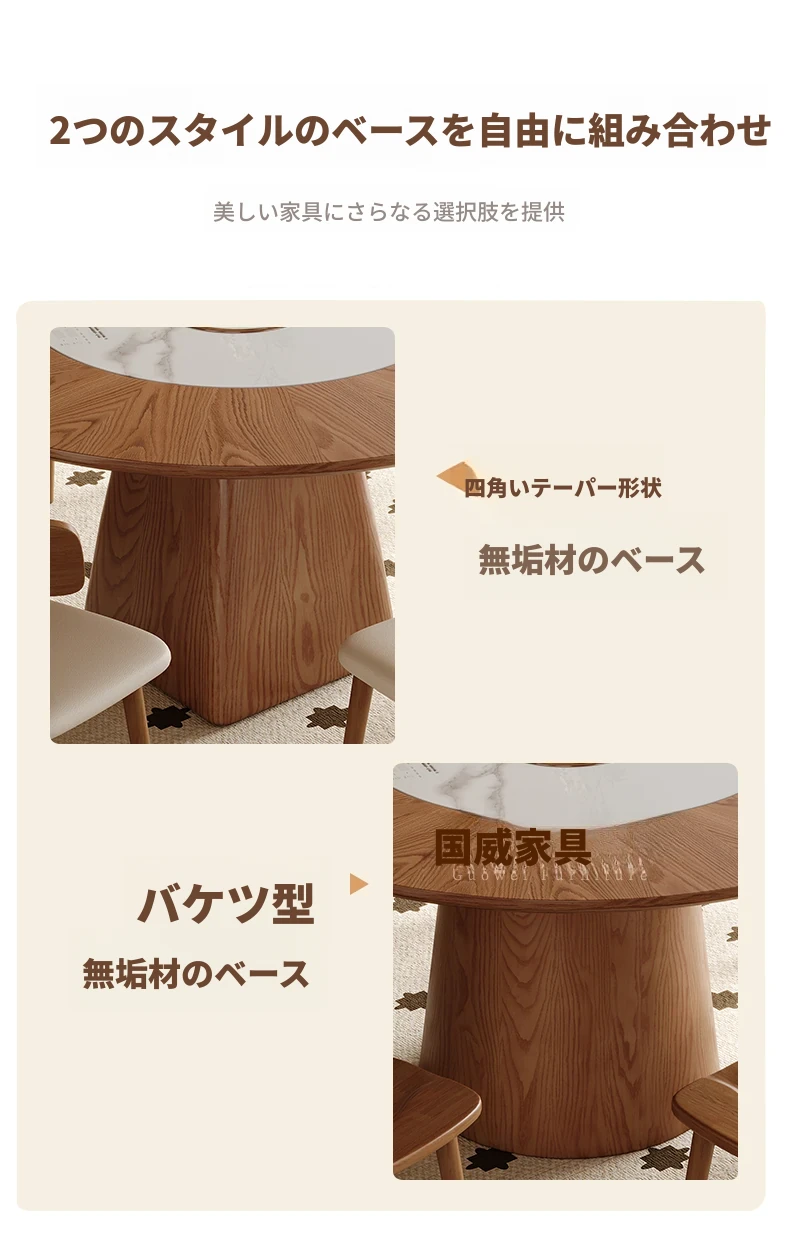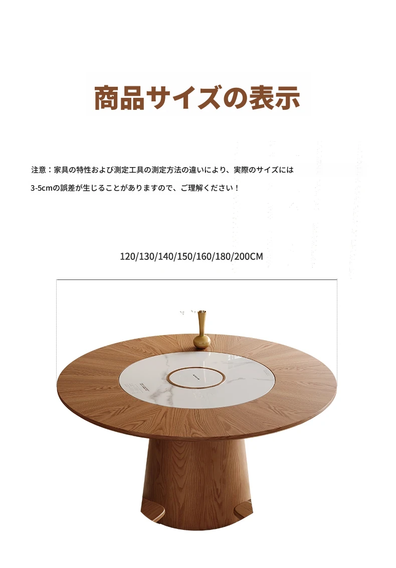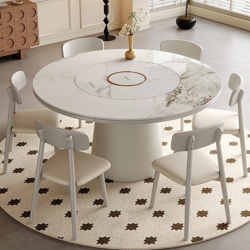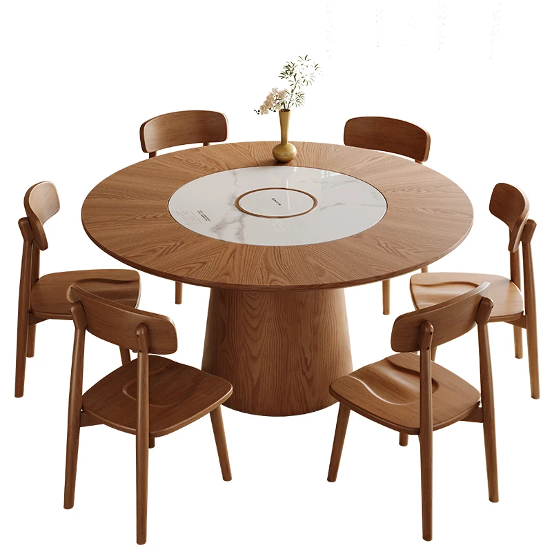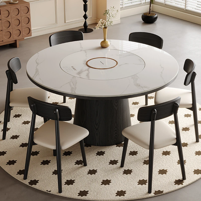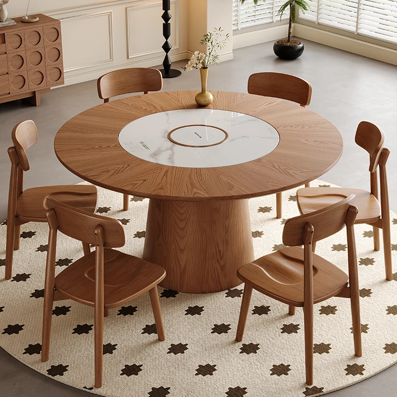 高級岩板ダイニングテーブルセット - シンプルでラグジュアリーな実木製の大丸テーブル、コンパクトな小型住宅に最適、内蔵暖かい料理用ボード付きの機能的な食卓。