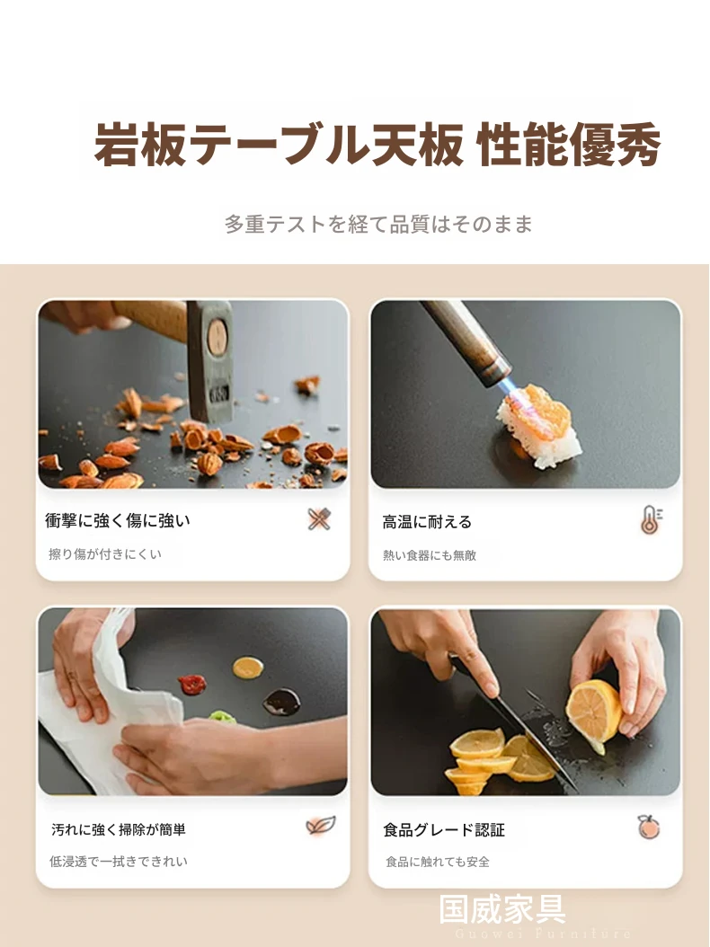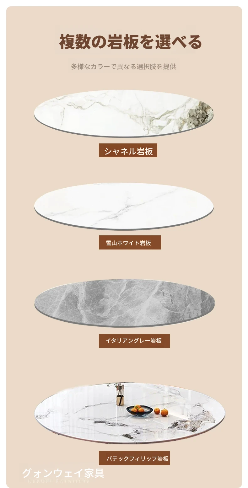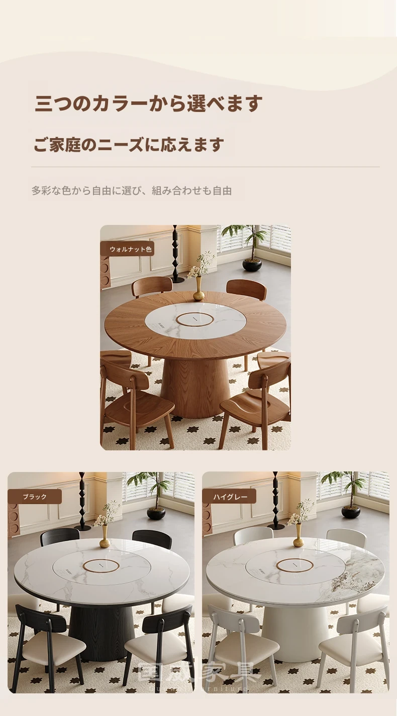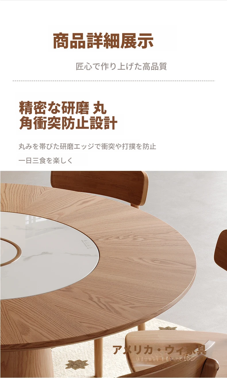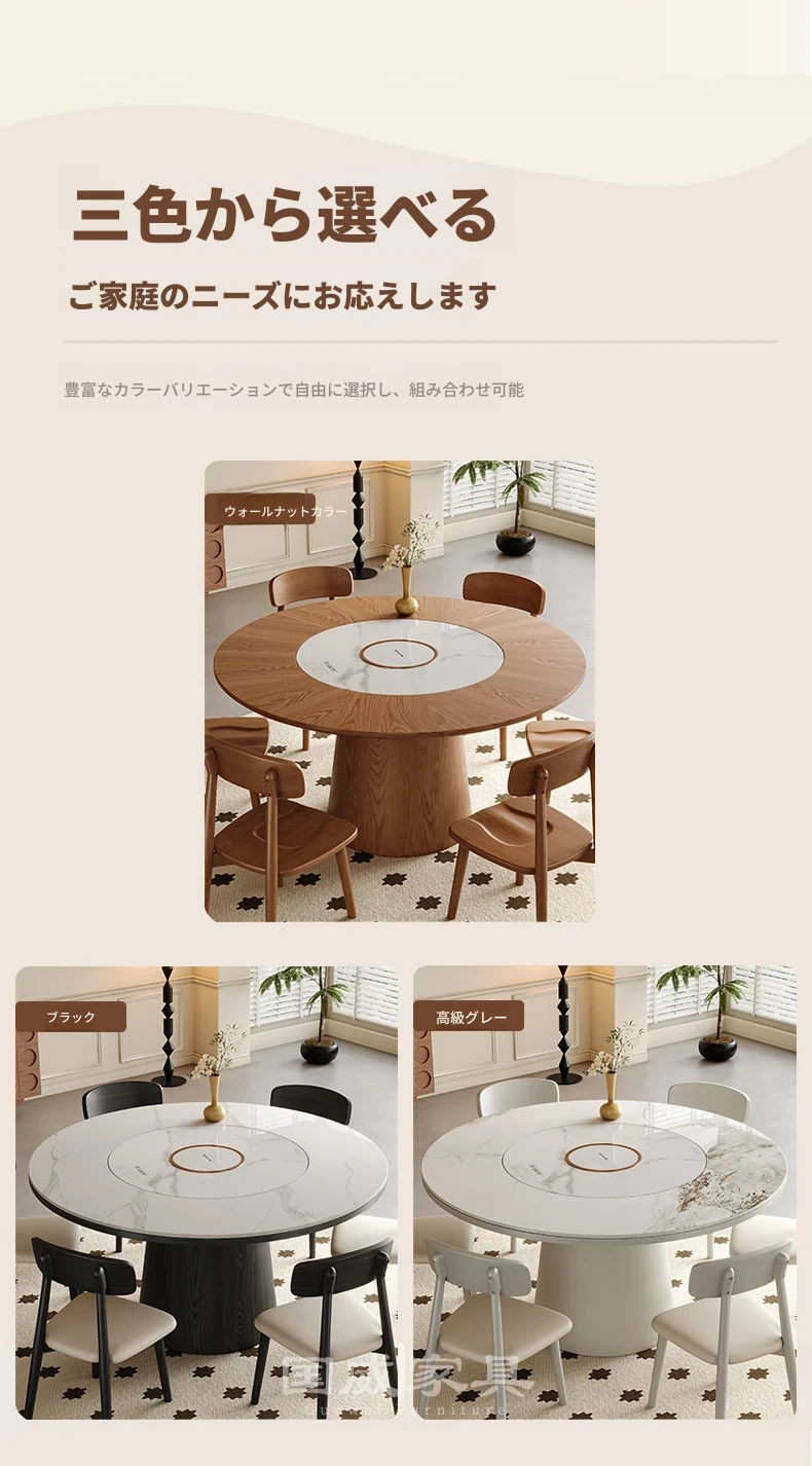 高級岩板ダイニングテーブルセット - シンプルでラグジュアリーな実木製の大丸テーブル、コンパクトな小型住宅に最適、内蔵暖かい料理用ボード付きの機能的な食卓。