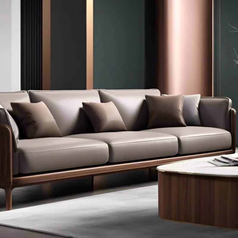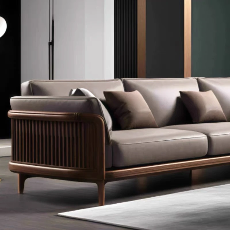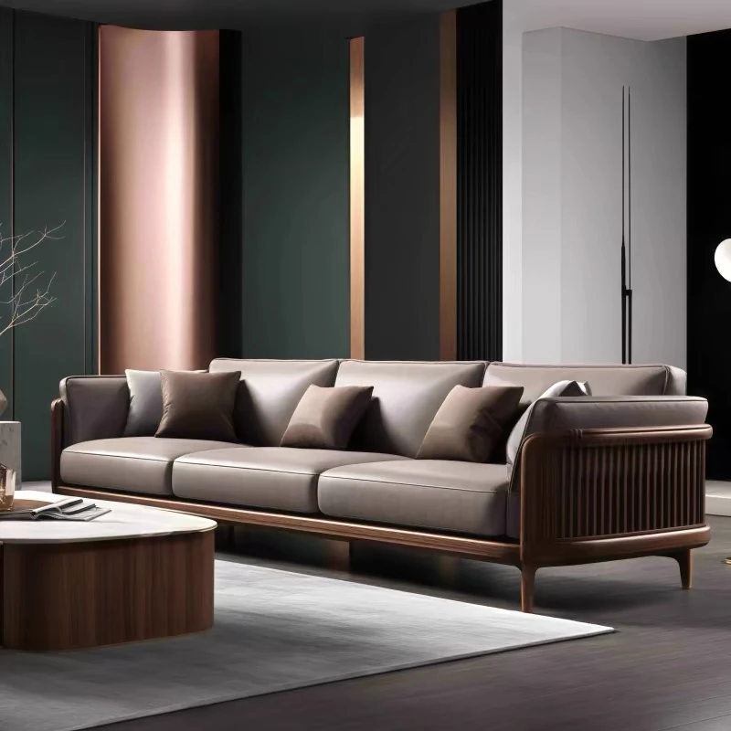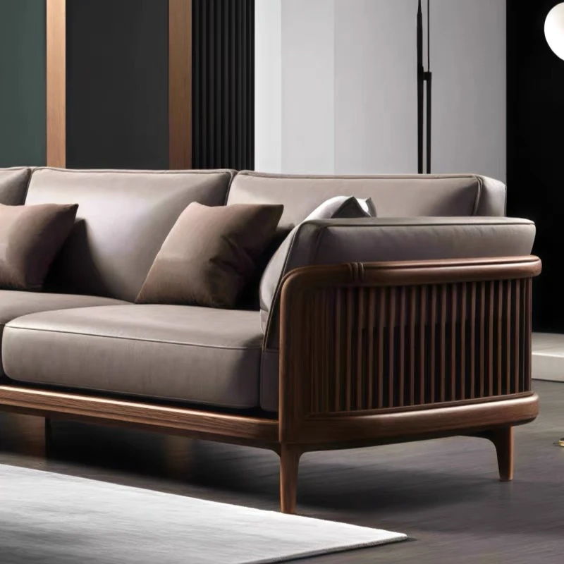 新中式イタリアンミニマリズムの無垢材ソファセット - 現代的でシンプルなラグジュアリー、リビングルームを優雅に彩る高級家具!