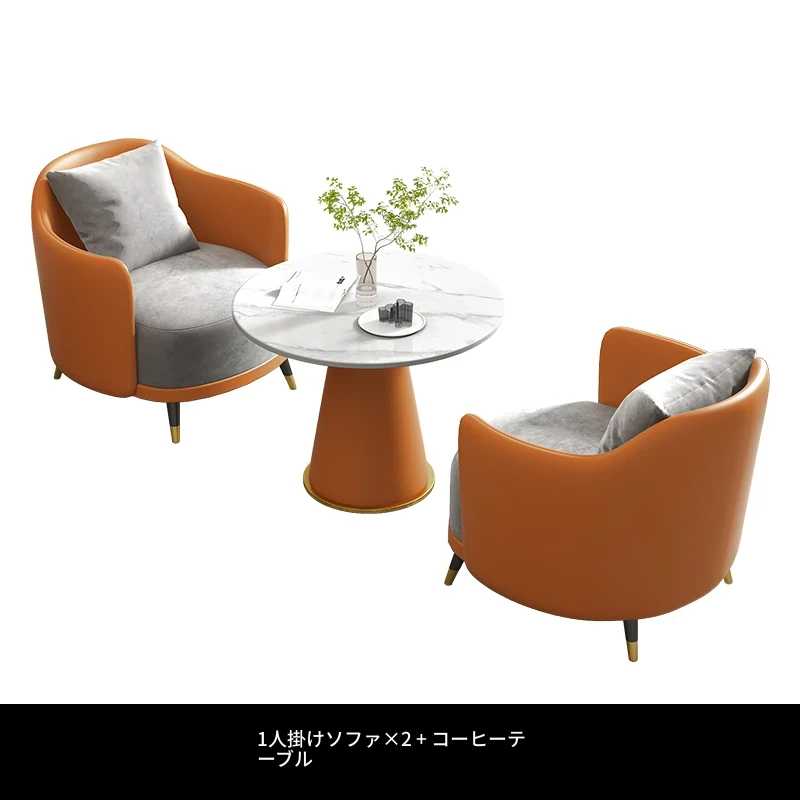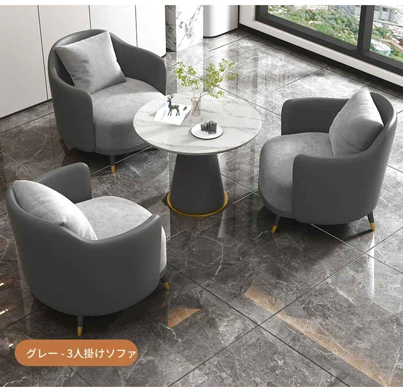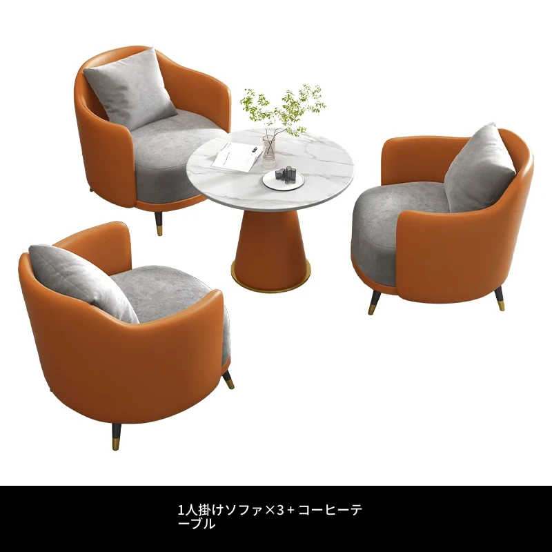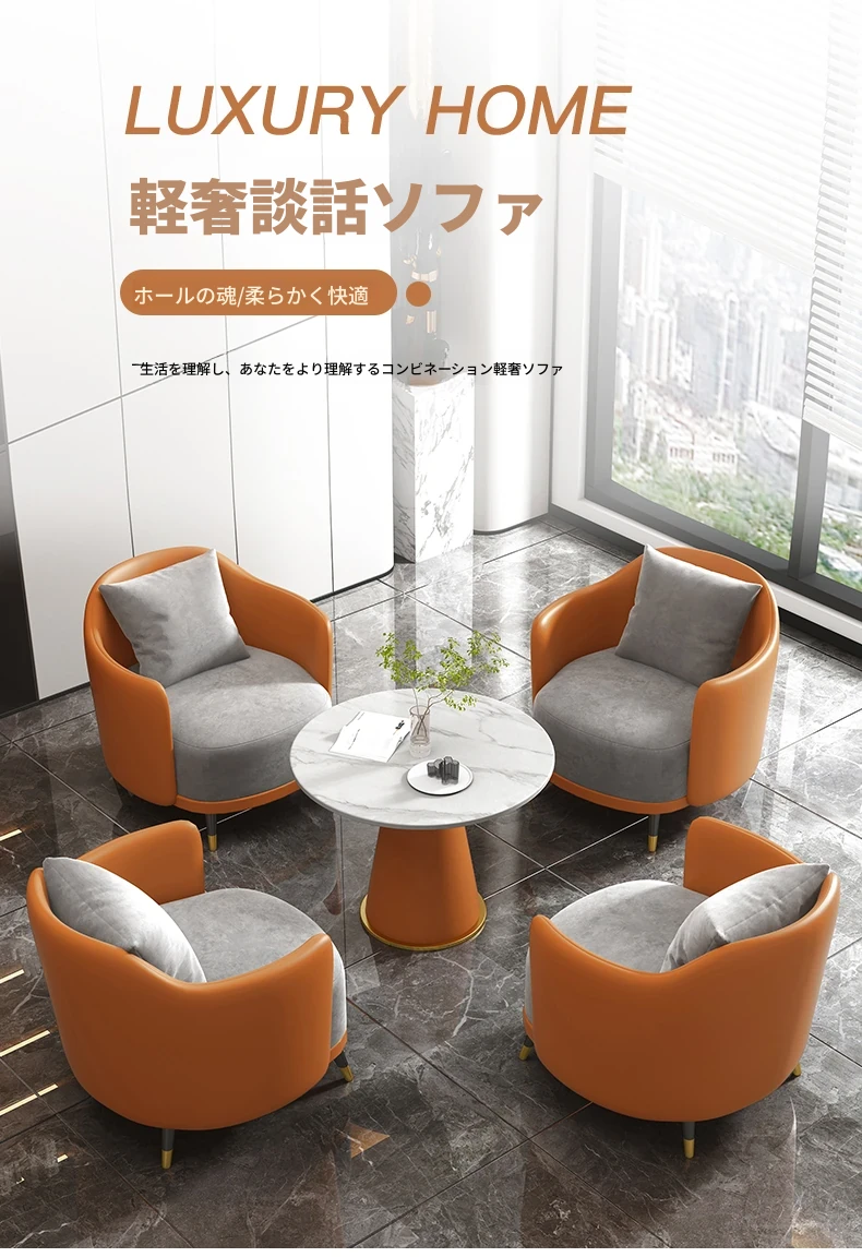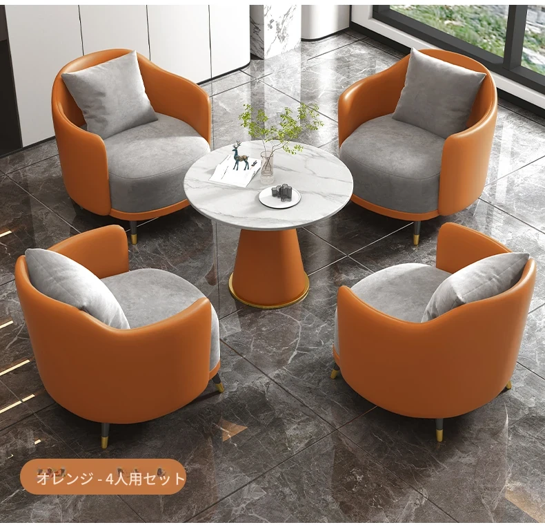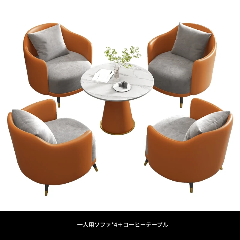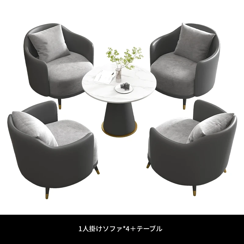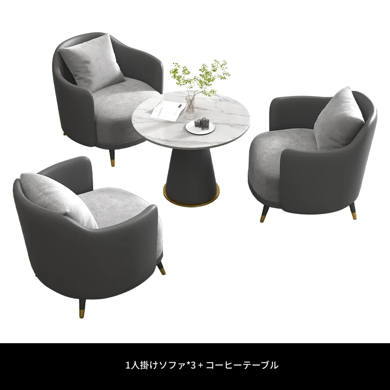 モダンシンプルな商談テーブル&チェアセット|販売所や接客に最適なソファ|リラックスできる家庭用専用ソファチェアで、洗練された空間を演出!