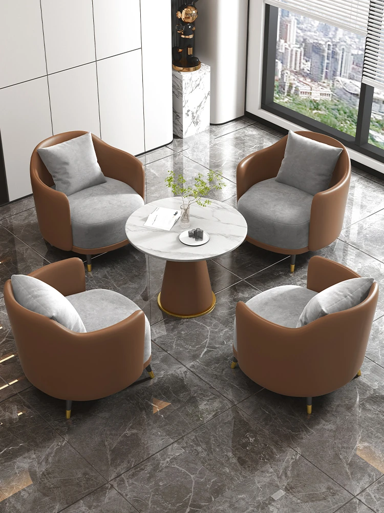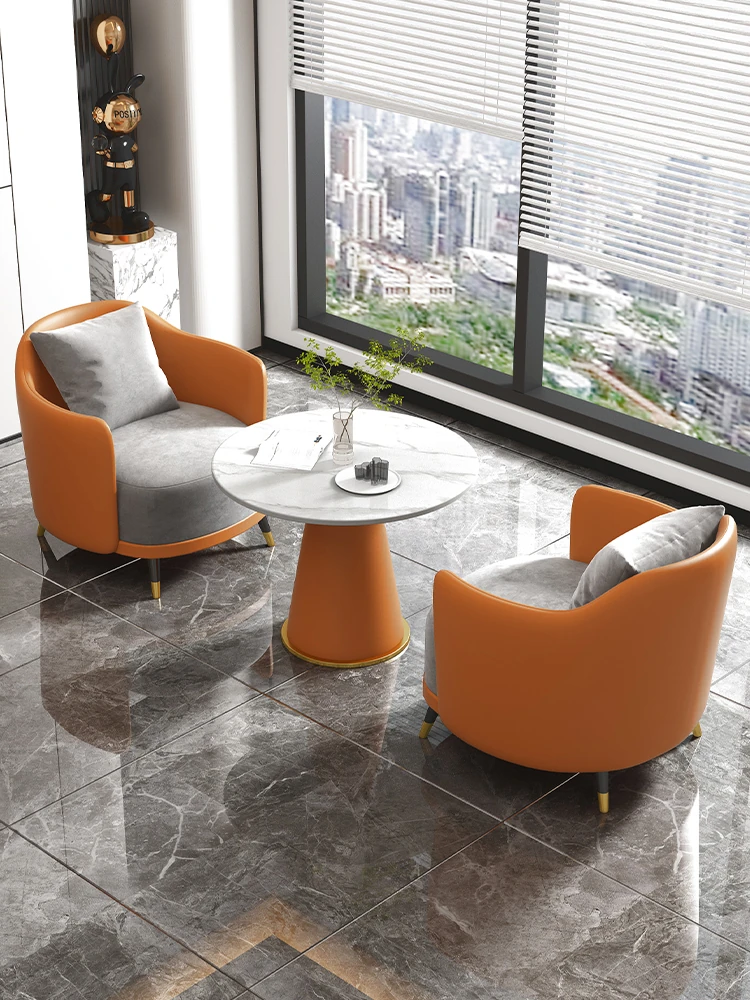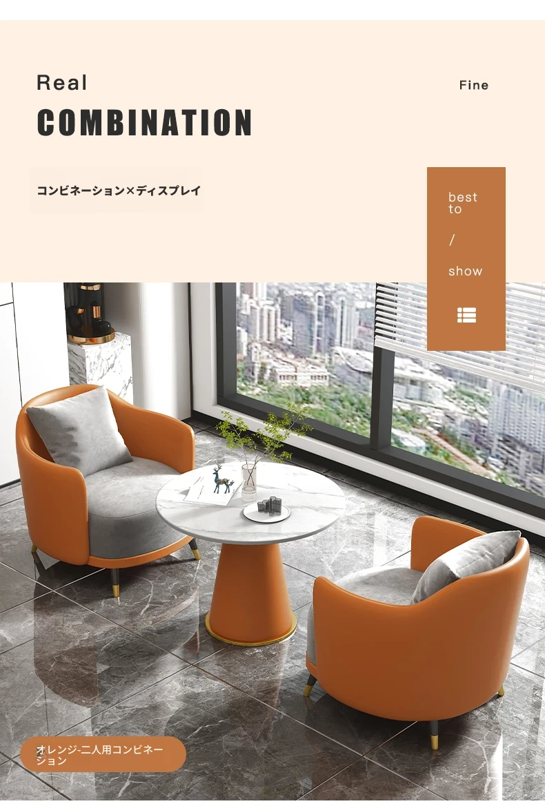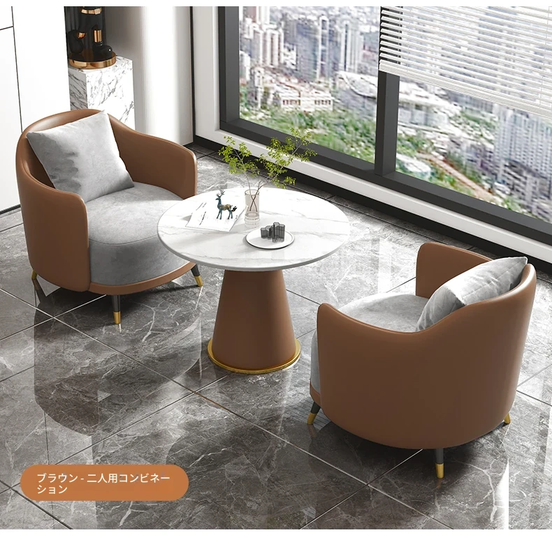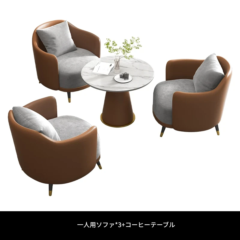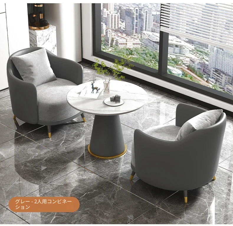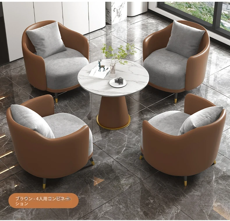 モダンシンプルな商談テーブル&チェアセット|販売所や接客に最適なソファ|リラックスできる家庭用専用ソファチェアで、洗練された空間を演出!