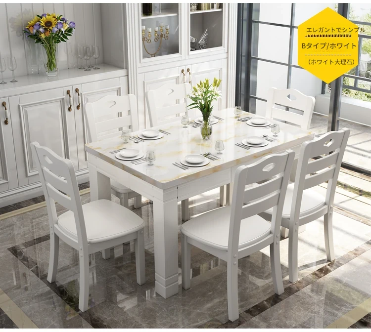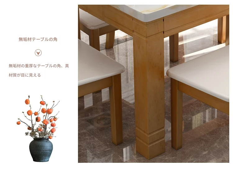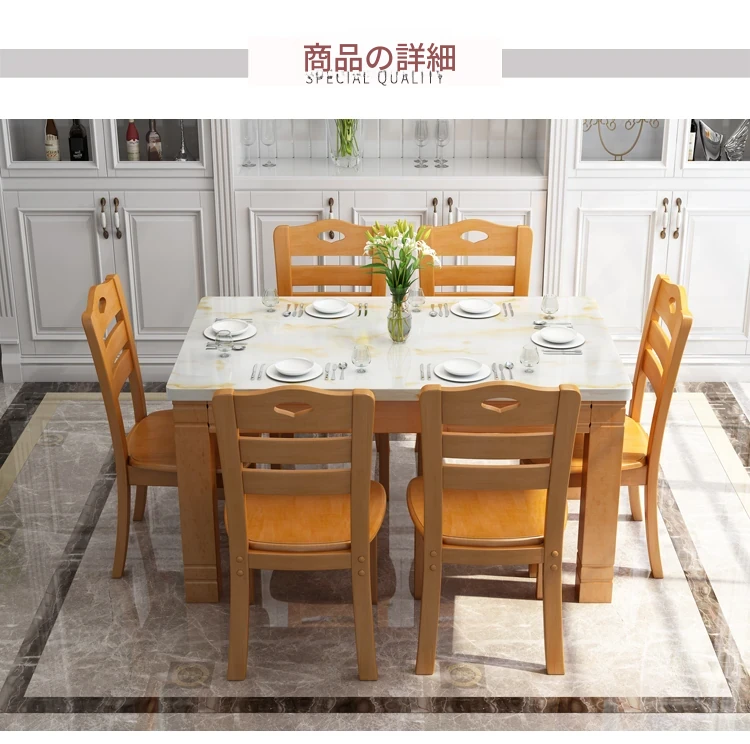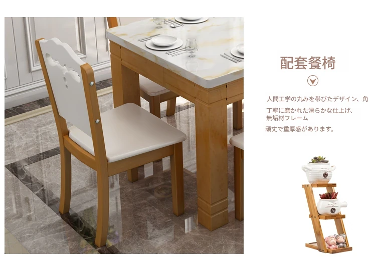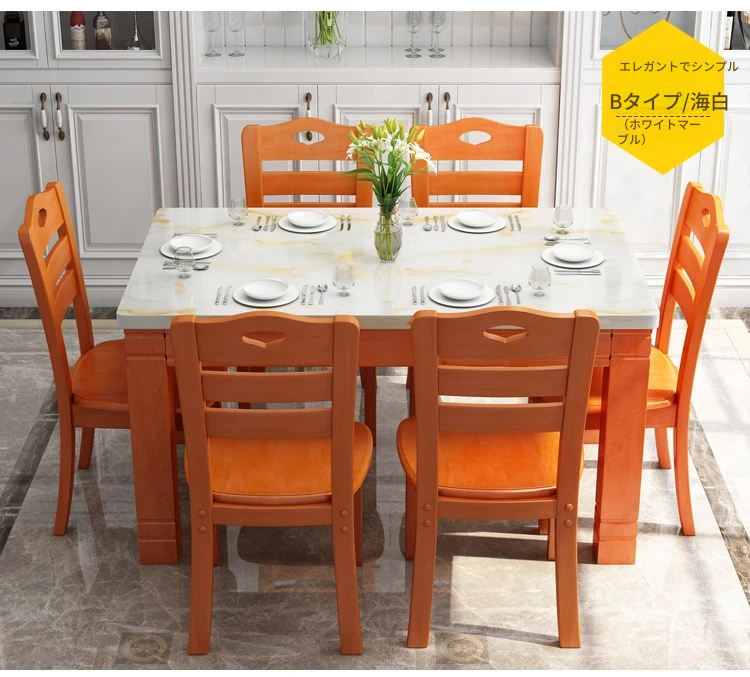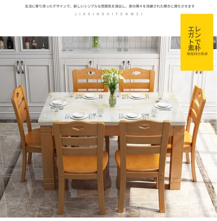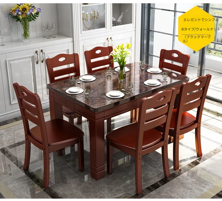 モダンでシンプルな大理石ダイニングテーブルセット|中華スタイルの長方形テーブル|小さな家族にも最適な実木製|おしゃれな食卓で美味しい食事を楽しもう!