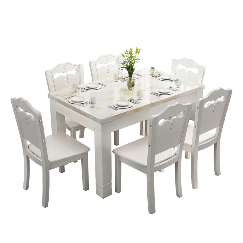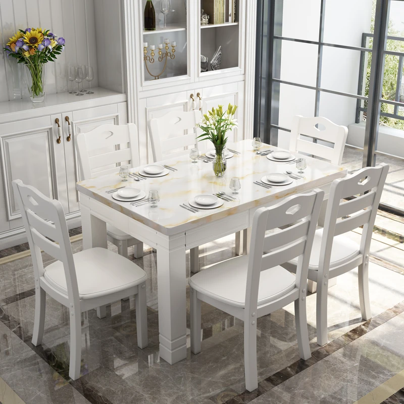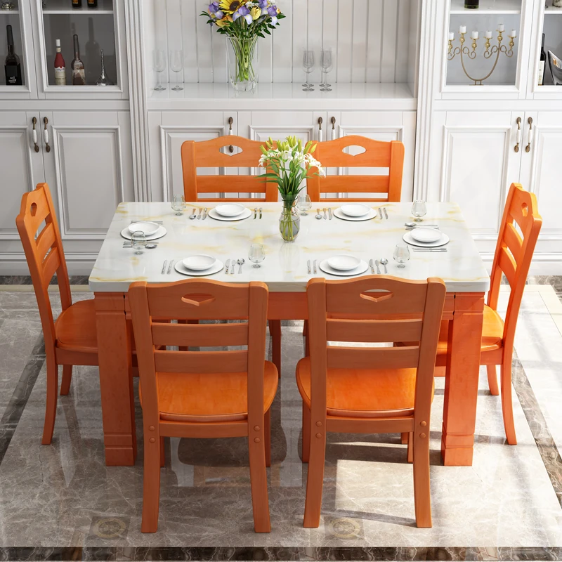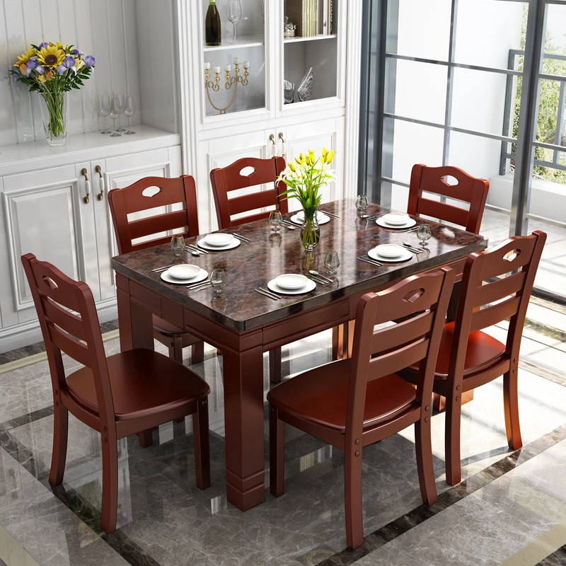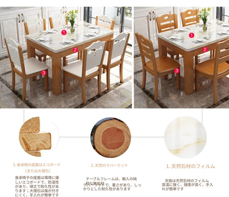 モダンでシンプルな大理石ダイニングテーブルセット|中華スタイルの長方形テーブル|小さな家族にも最適な実木製|おしゃれな食卓で美味しい食事を楽しもう!
