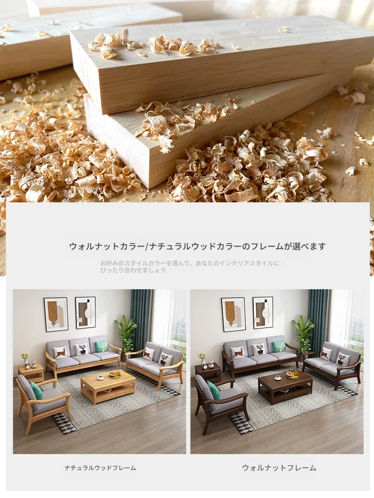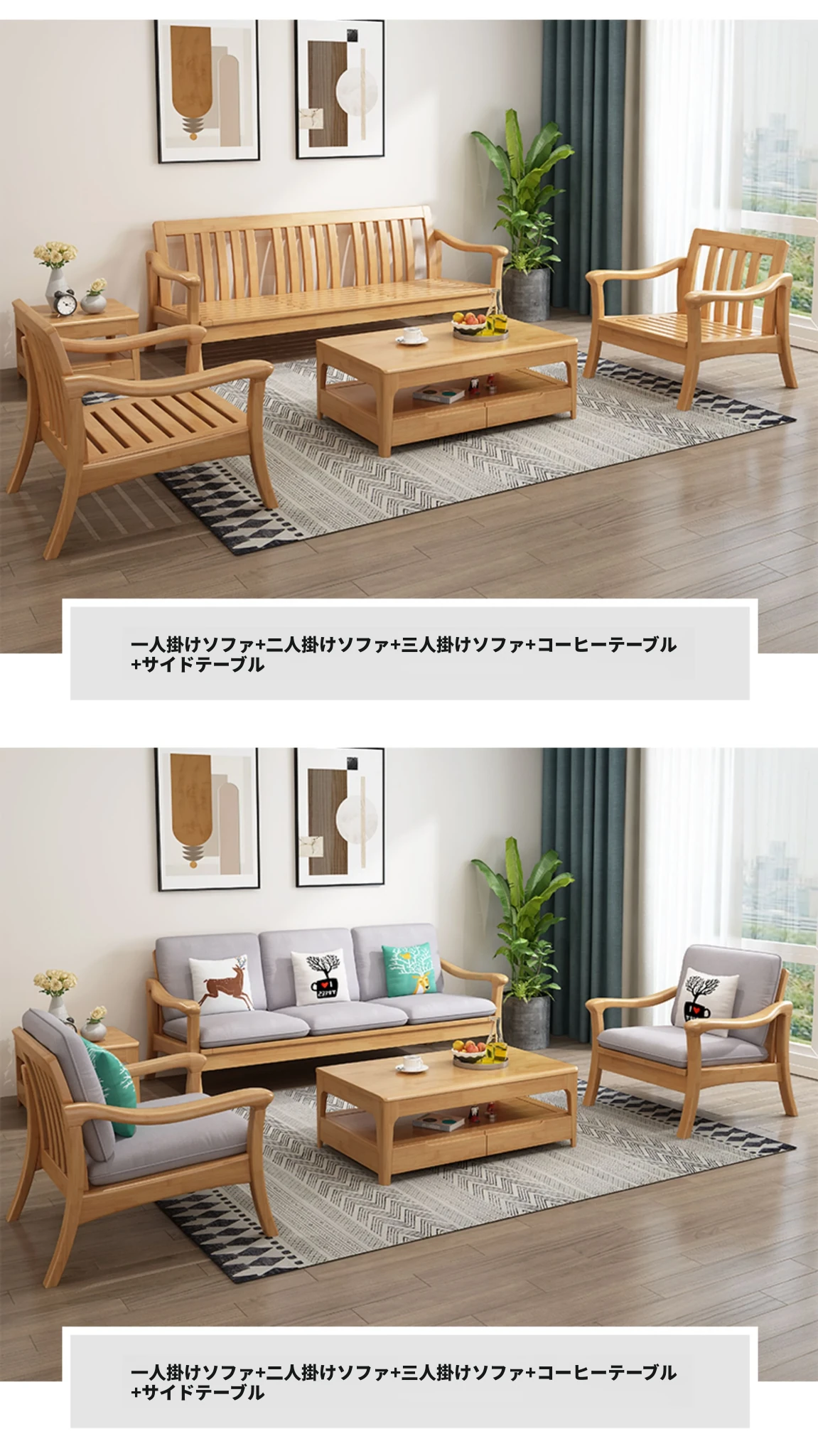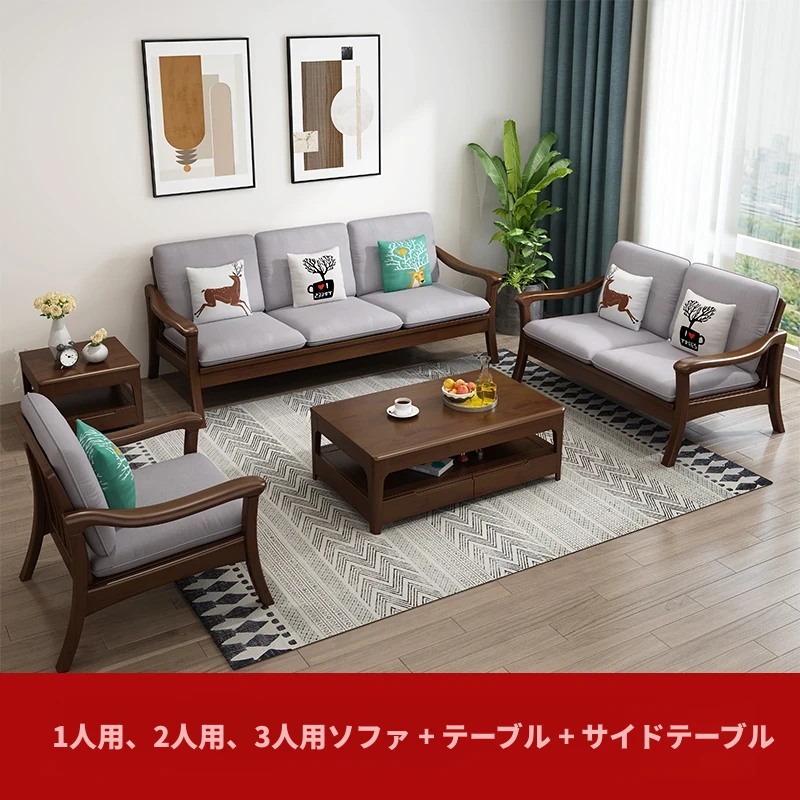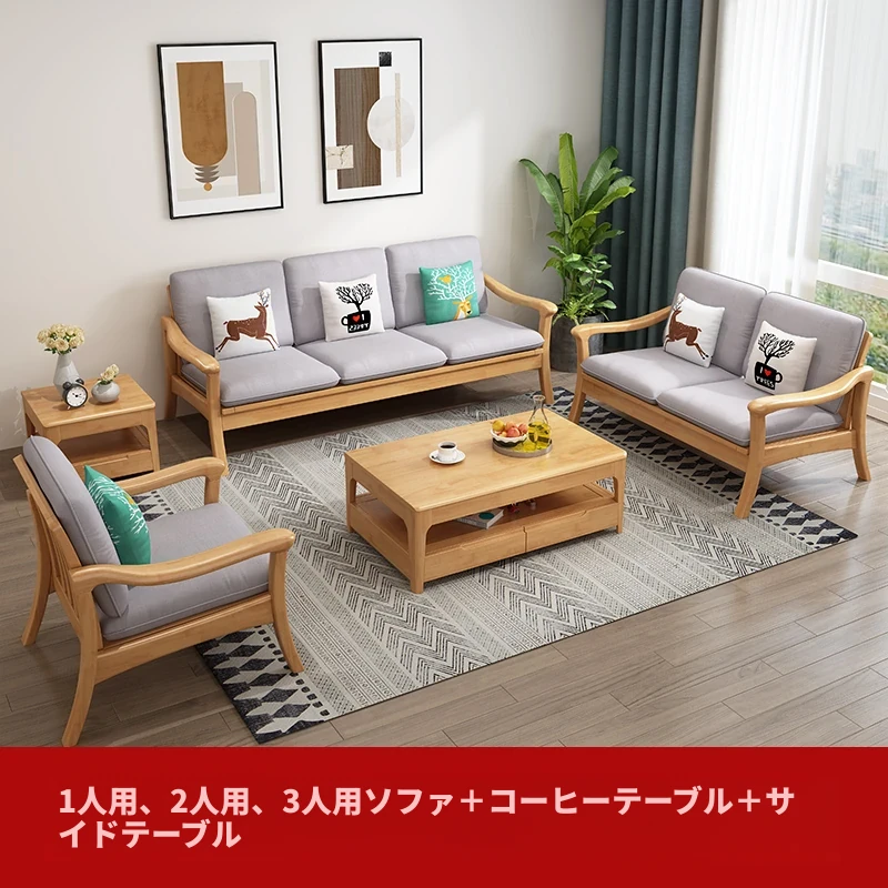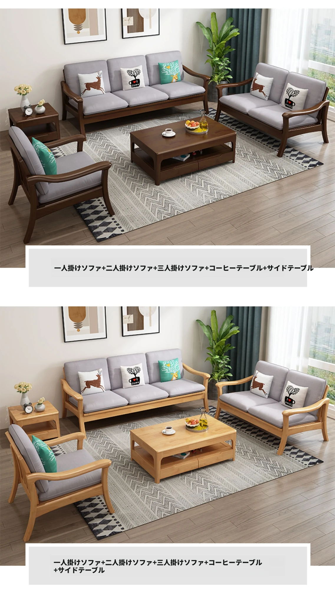 全実木ソファセット|モダンでシンプルな北欧スタイル|冬夏両用のオーク材ファブリックソファ|小型リビングに最適!快適でスタイリッシュな空間を演出します。