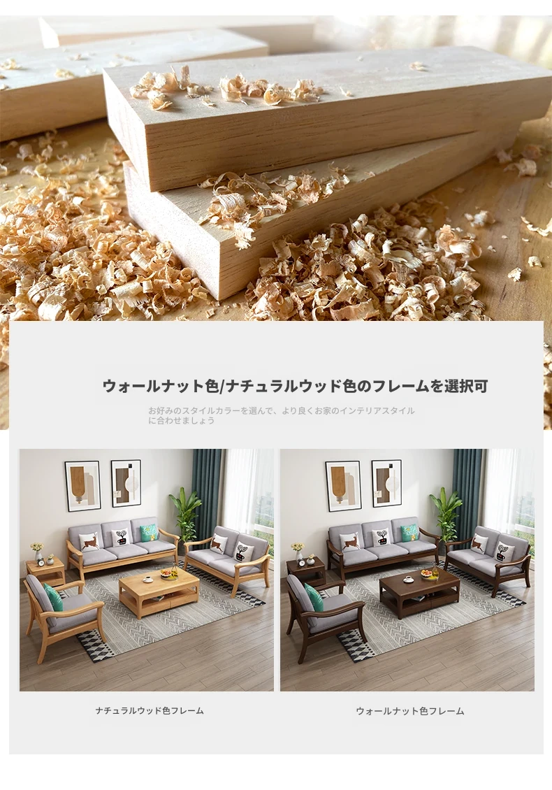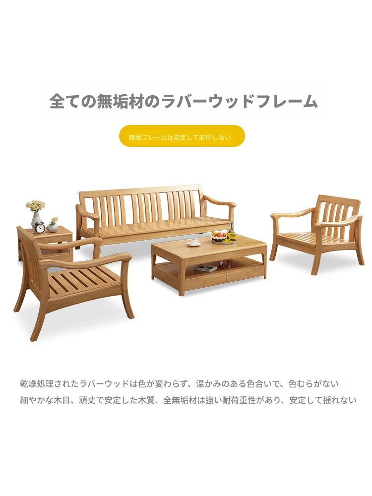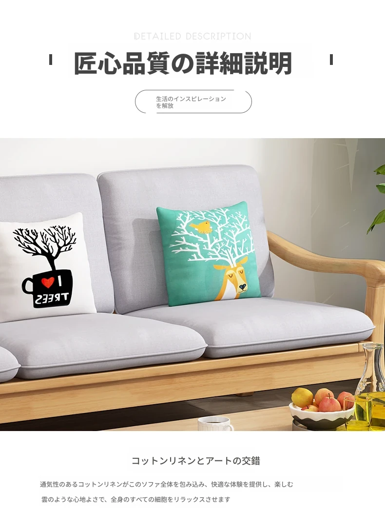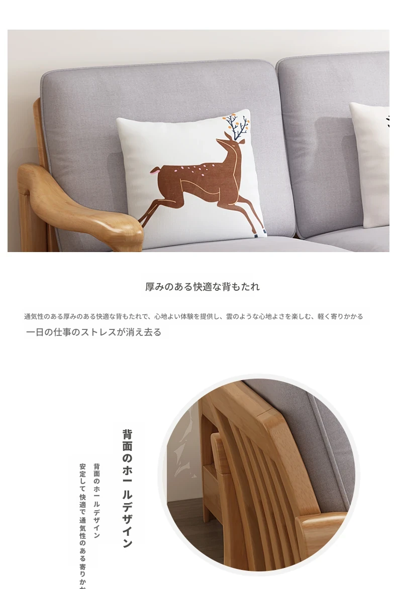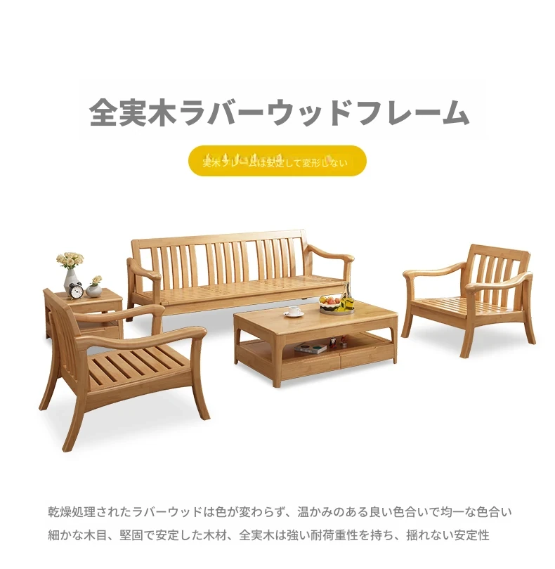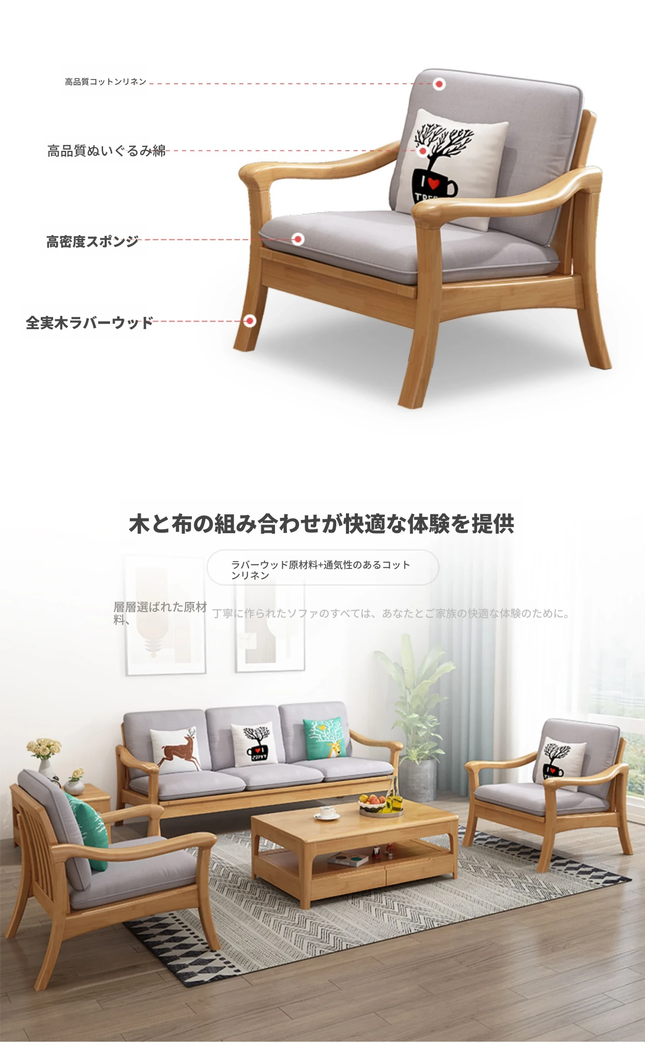 全実木ソファセット|モダンでシンプルな北欧スタイル|冬夏両用のオーク材ファブリックソファ|小型リビングに最適!快適でスタイリッシュな空間を演出します。