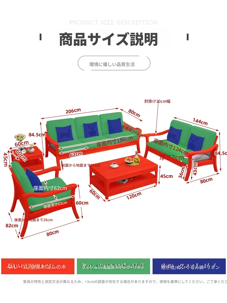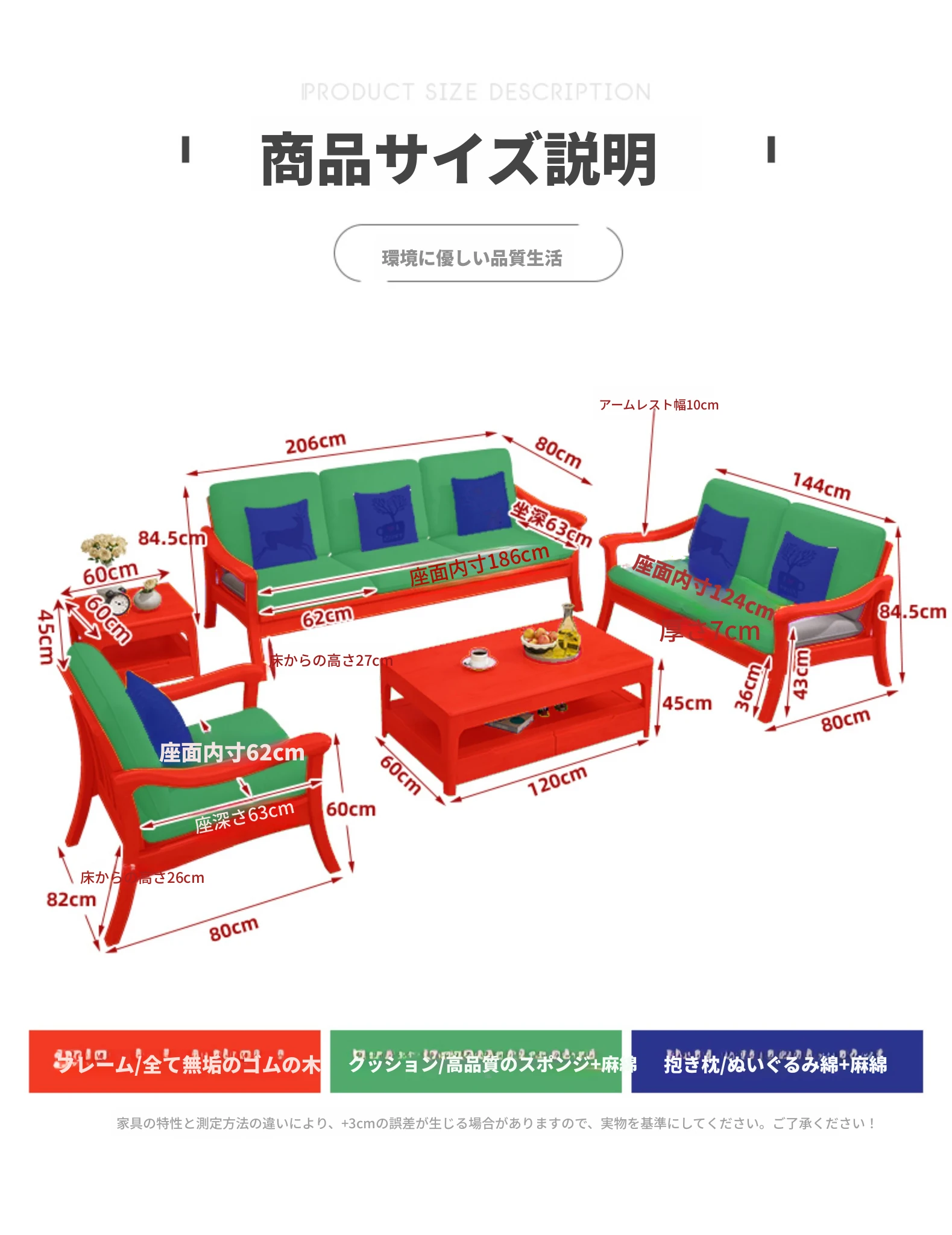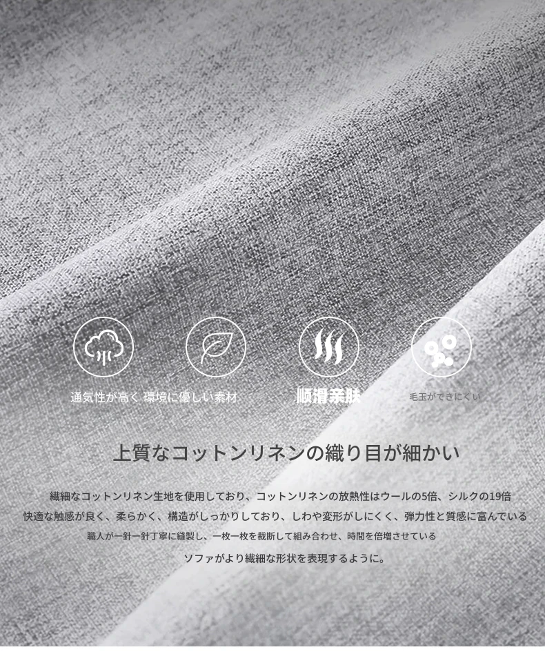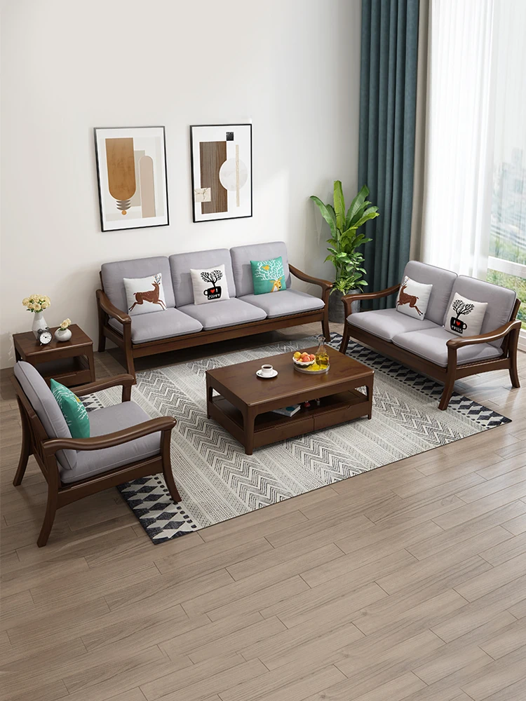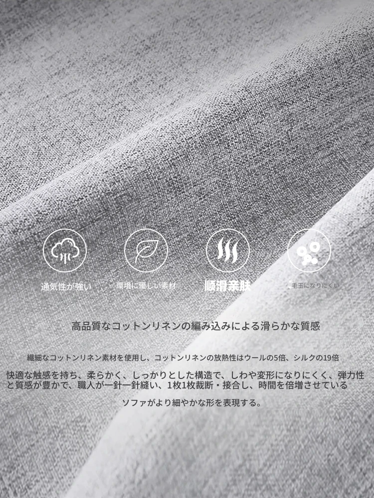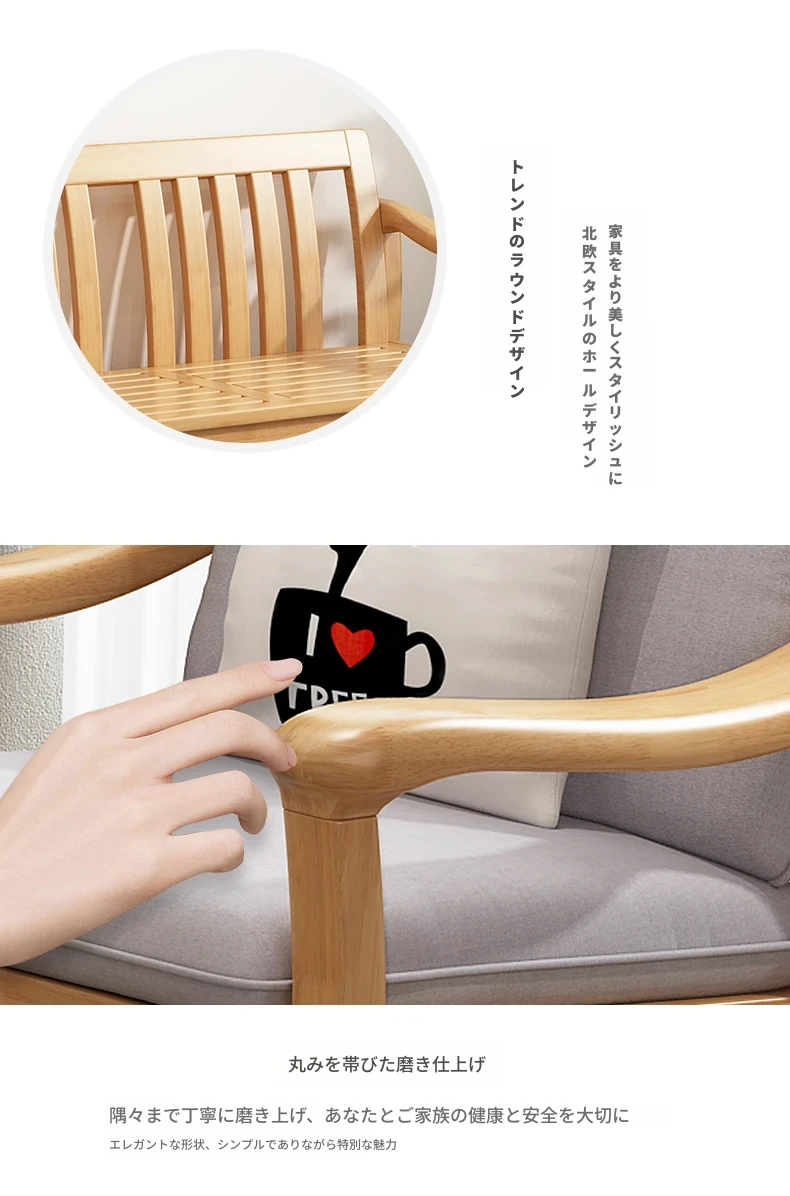 全実木ソファセット|モダンでシンプルな北欧スタイル|冬夏両用のオーク材ファブリックソファ|小型リビングに最適!快適でスタイリッシュな空間を演出します。