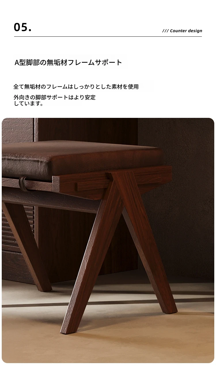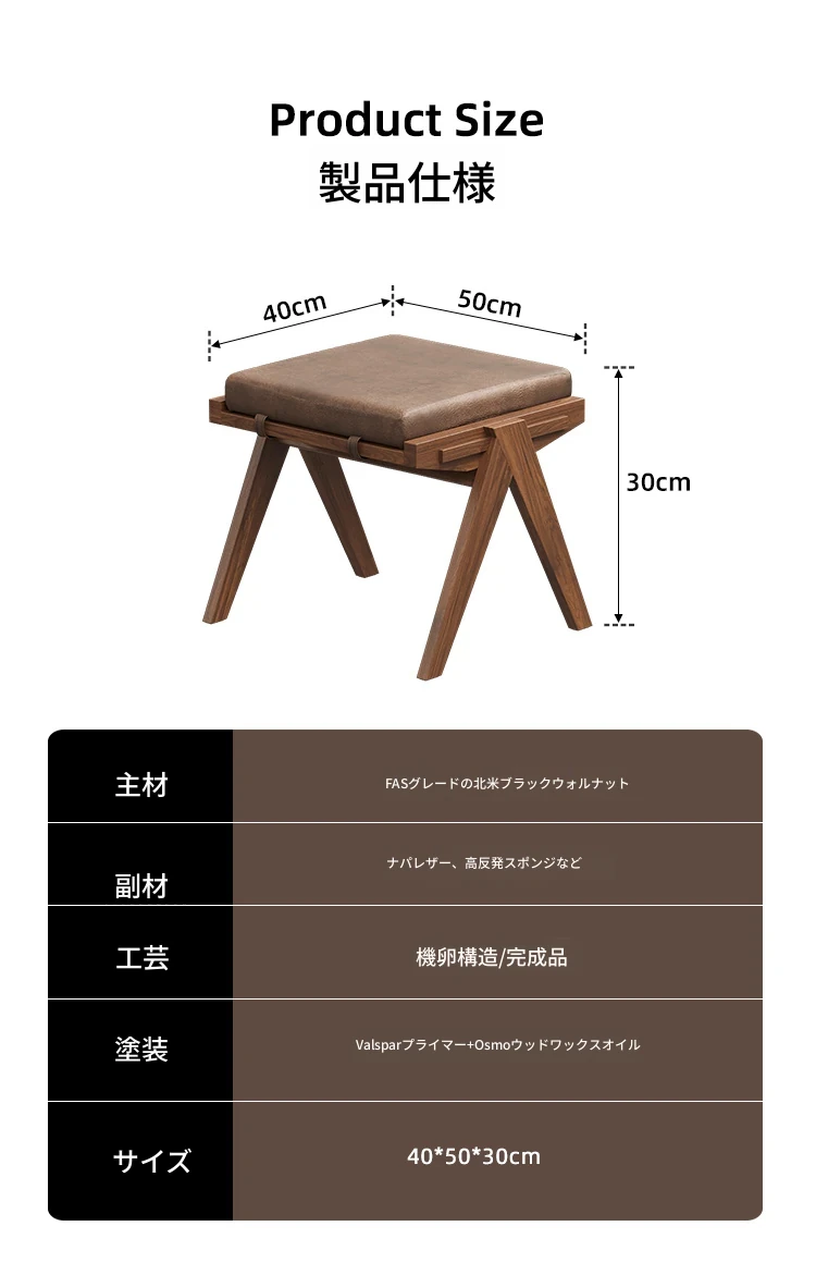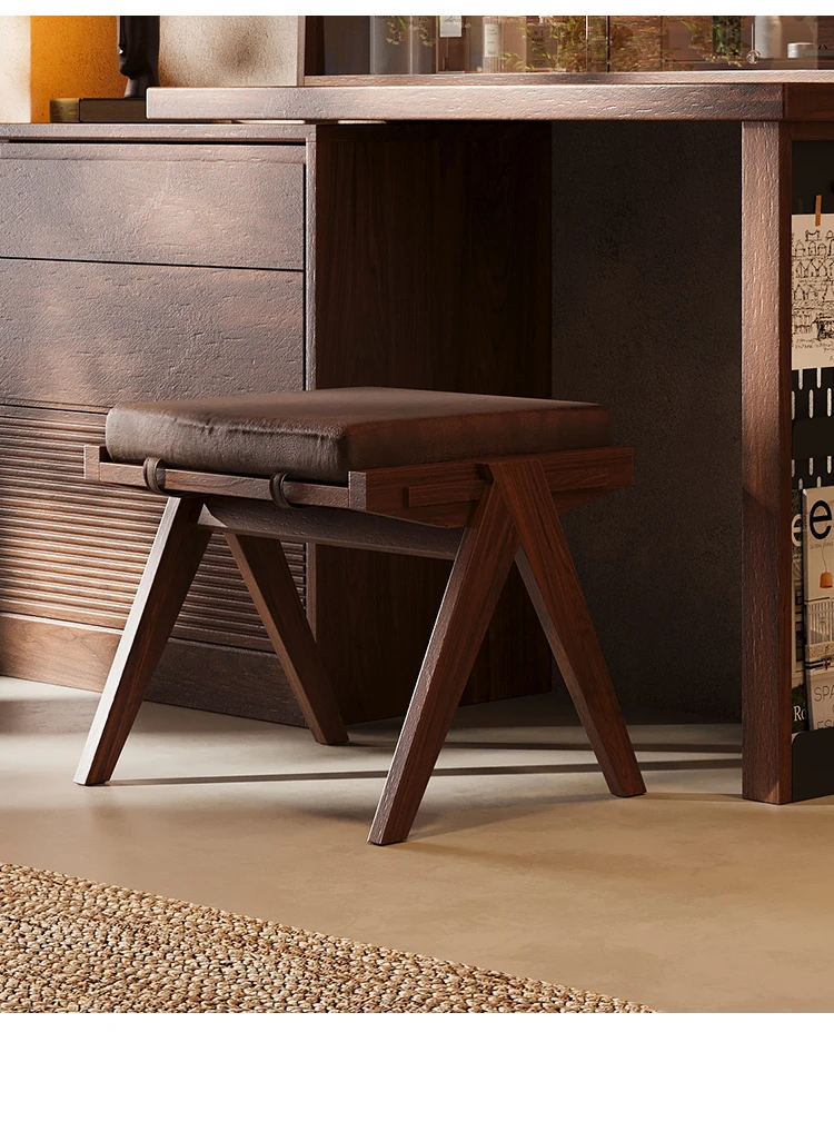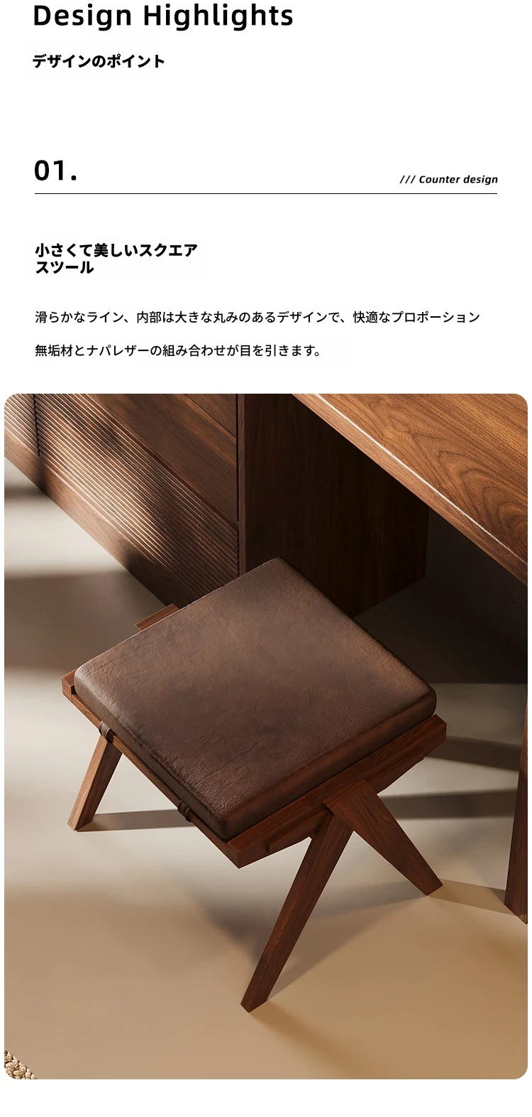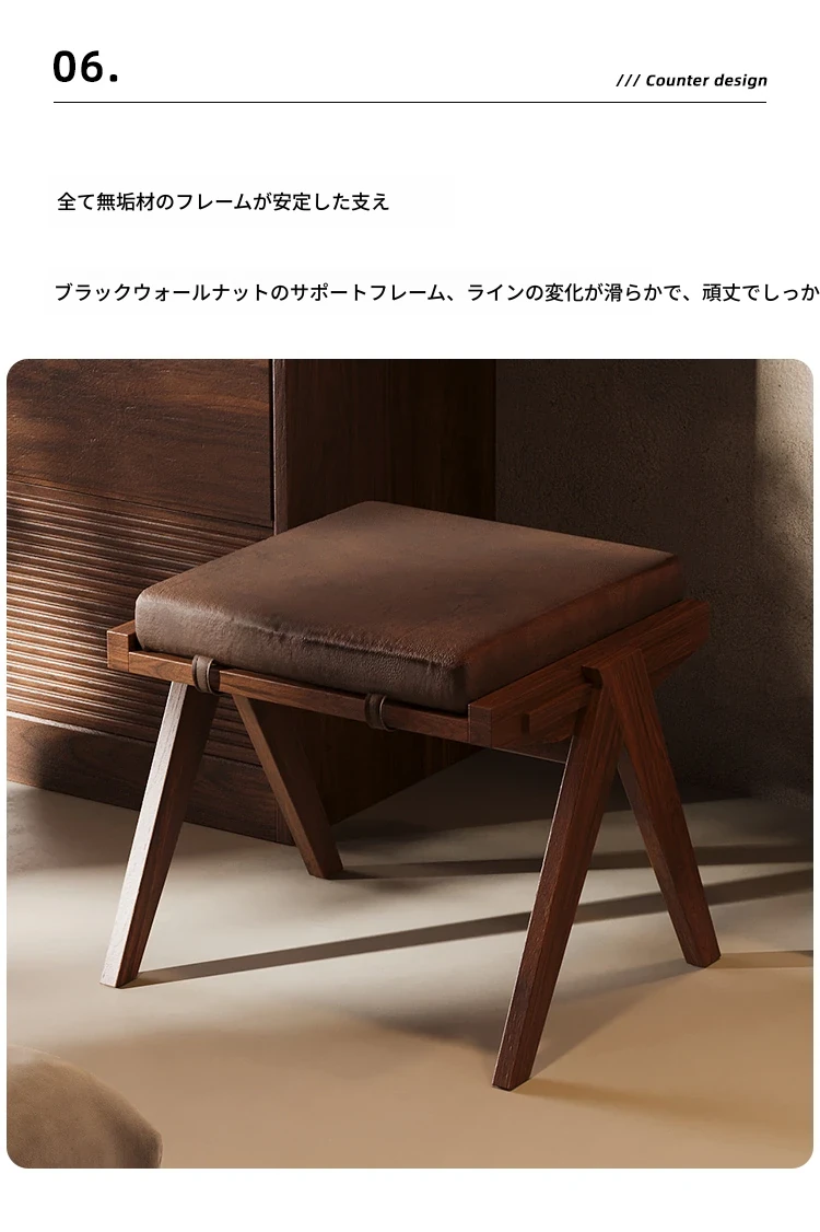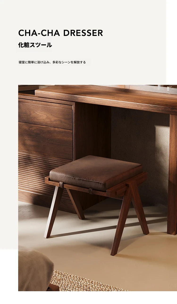 北米産ブラックウォールナットの化粧台用スツール | モダンでシンプルなデザイン、上質な雰囲気を演出 | 寝室にぴったりな高級感あふれる化粧椅子
