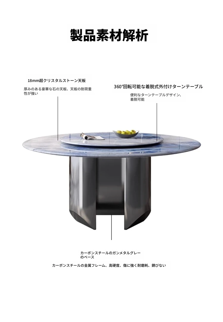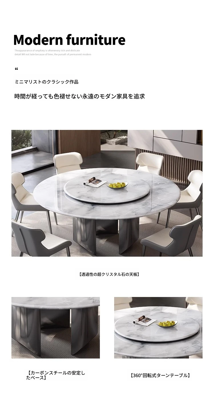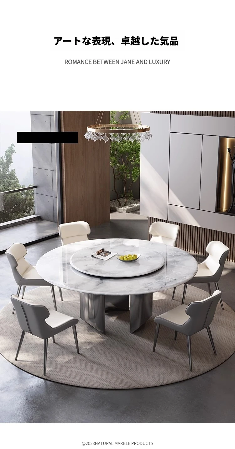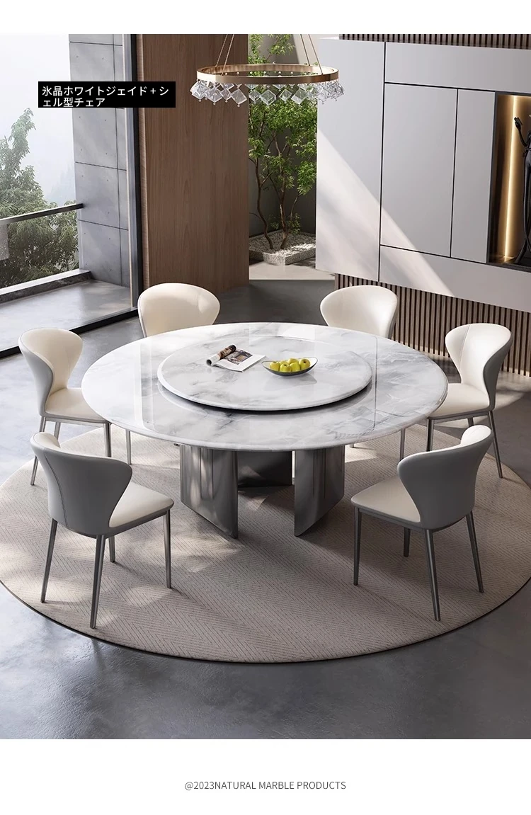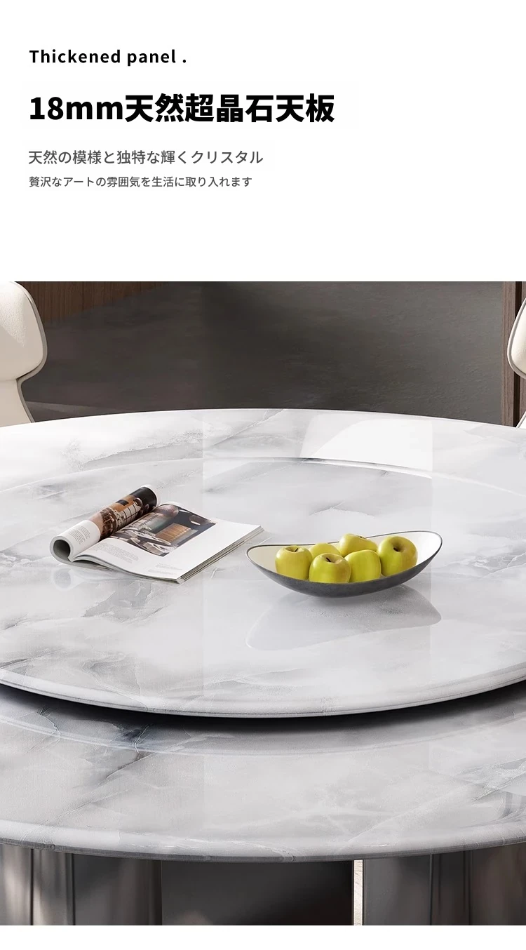 新作!軽奢スタイルの超クリスタルストーンダイニングテーブル&チェアセット、家庭用1.8mの天然ミクロクリスタル大理石ラウンドテーブルで、優雅な食事体験をお楽しみください!