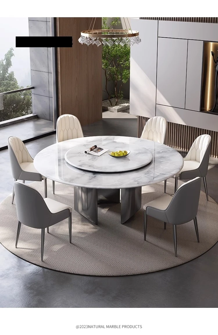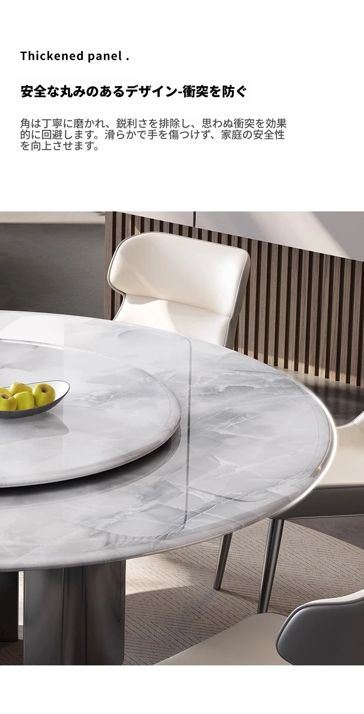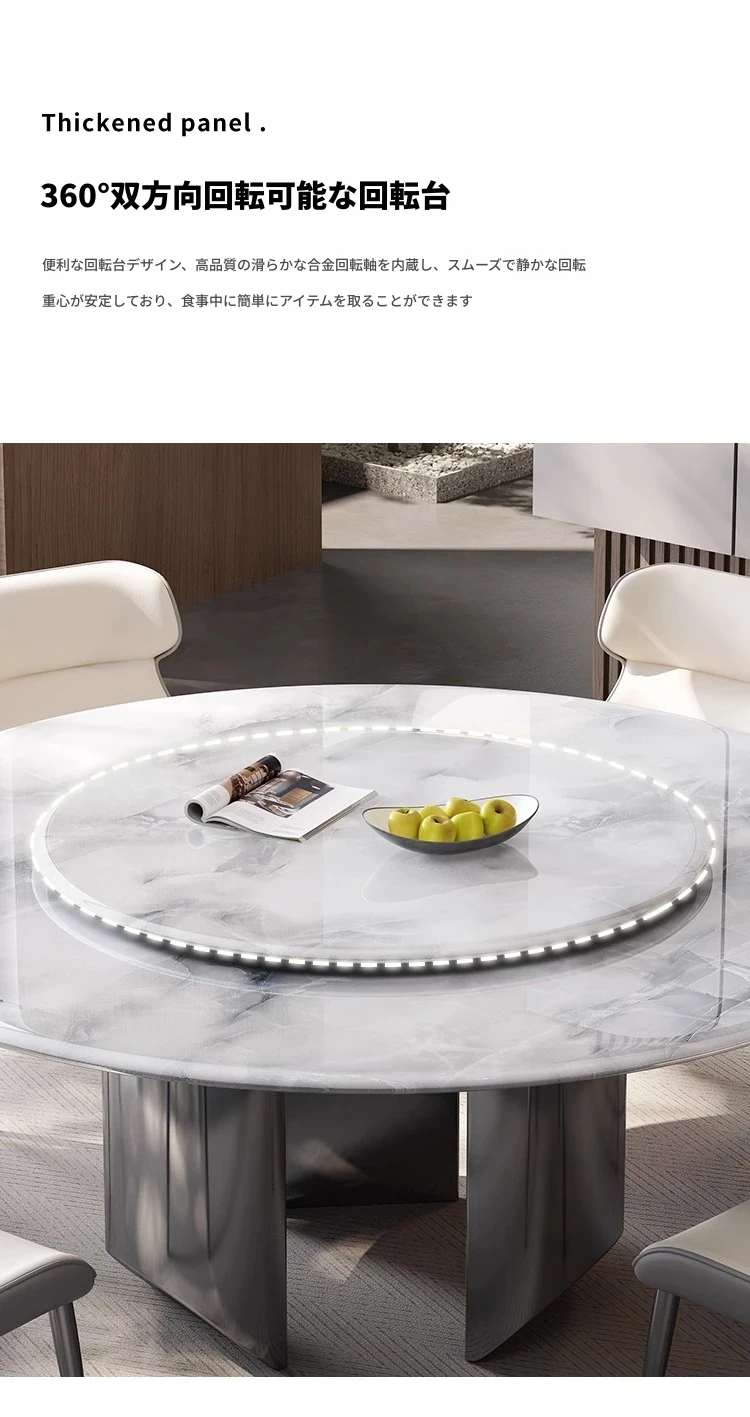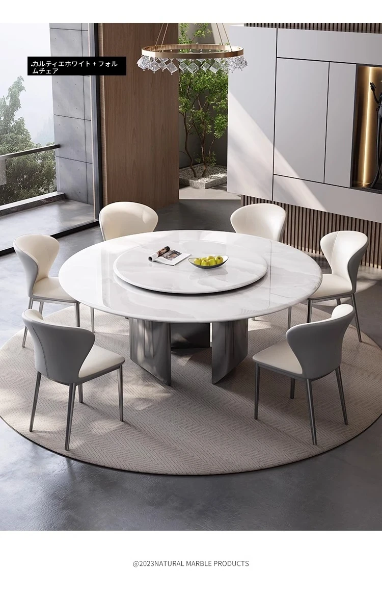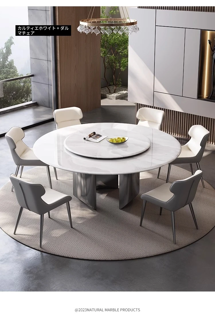新作!軽奢スタイルの超クリスタルストーンダイニングテーブル&チェアセット、家庭用1.8mの天然ミクロクリスタル大理石ラウンドテーブルで、優雅な食事体験をお楽しみください!