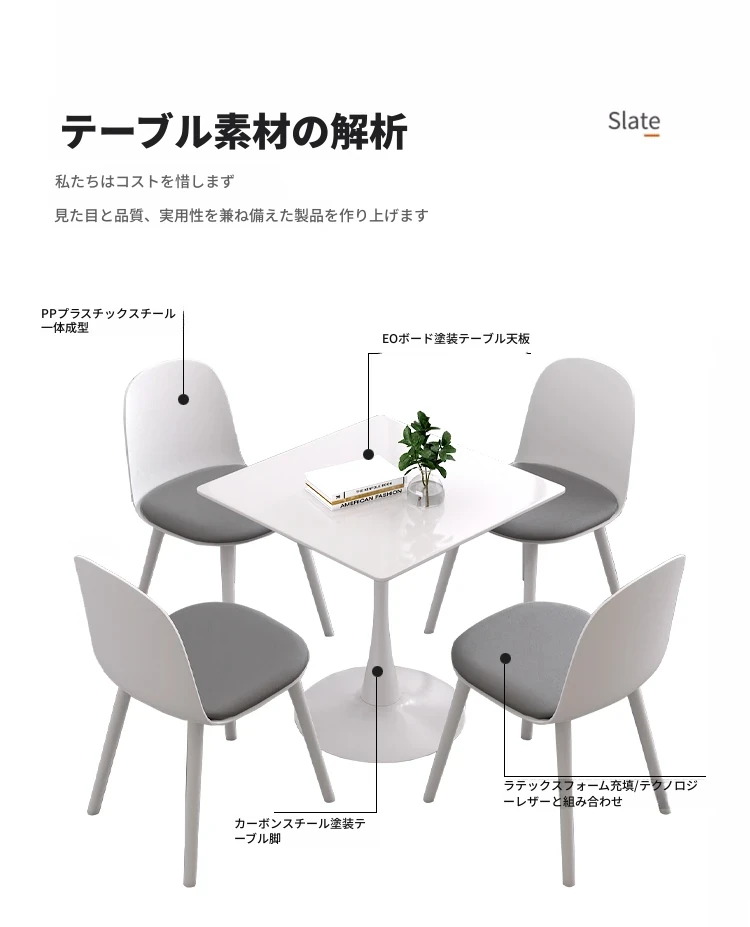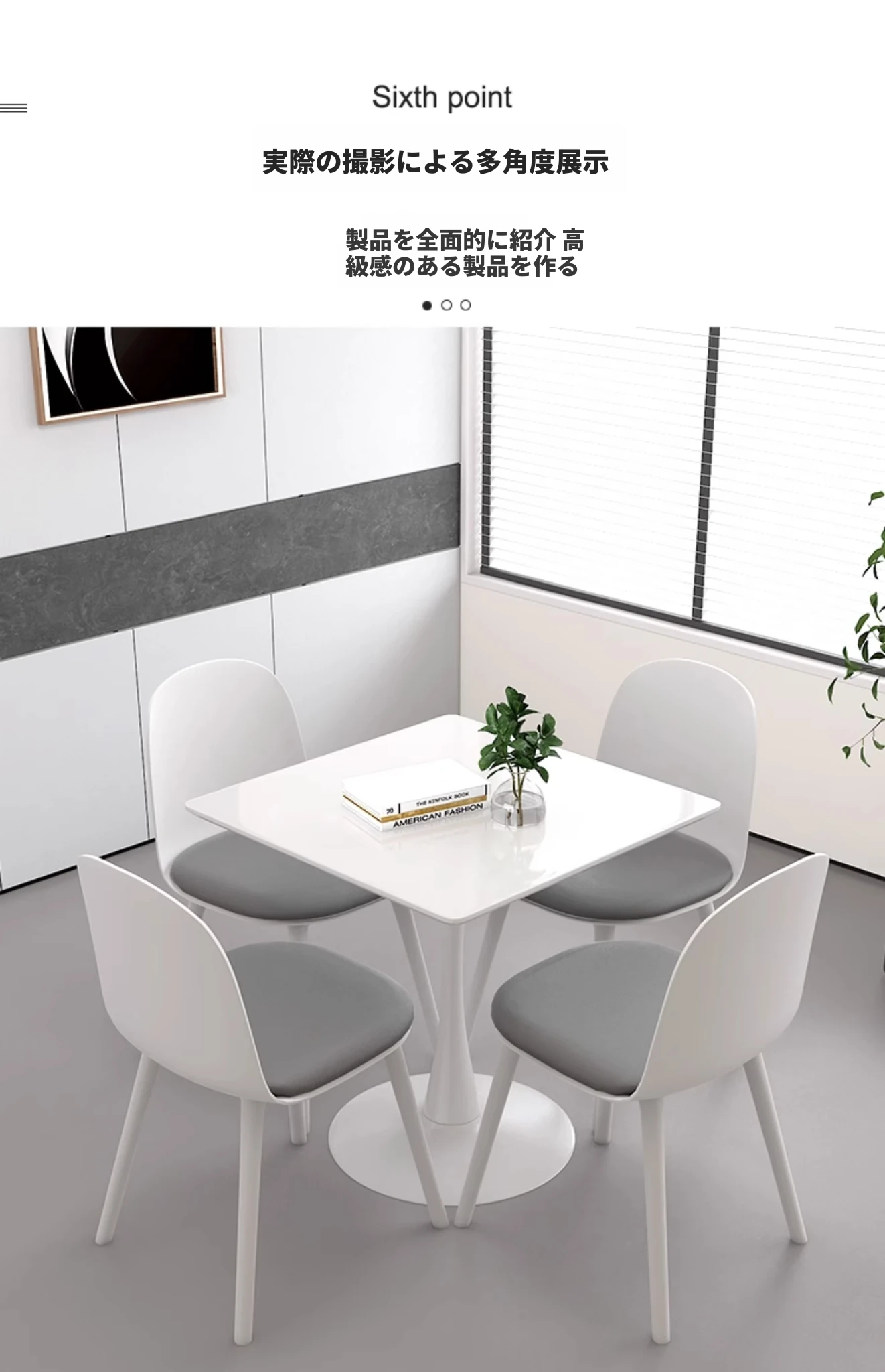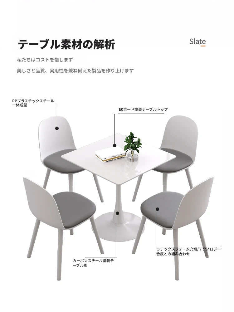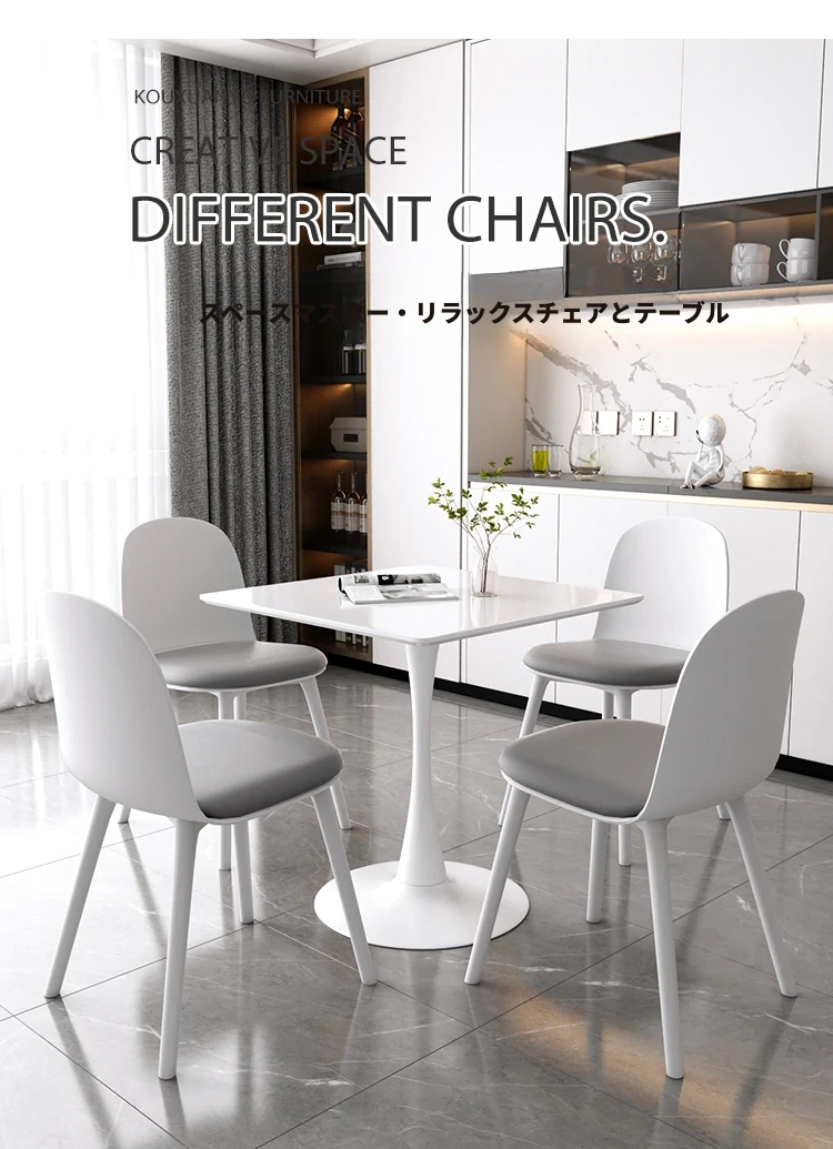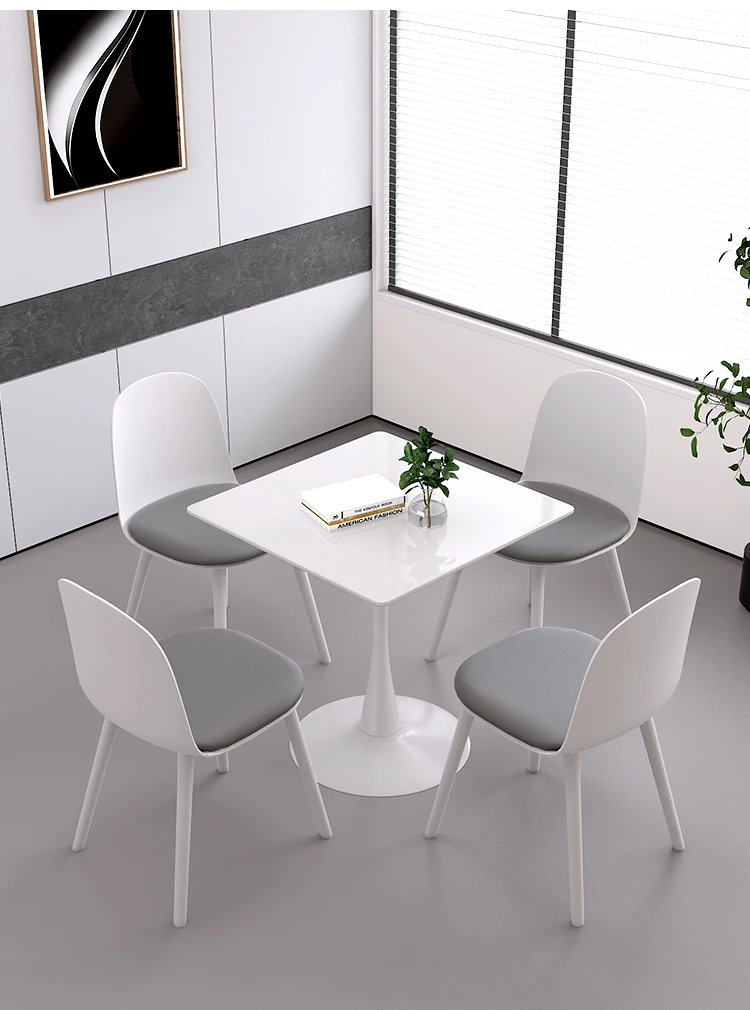 北欧スタイルのカジュアルな会議テーブル&チェアセット|正方形デザインで、4人用|店舗や小さな居住空間に最適なダイニングテーブル!快適な座り心地で、ゲストをお迎えするのにぴったりです。