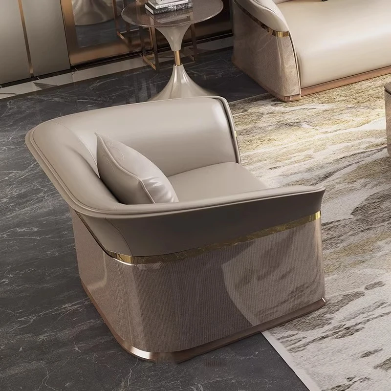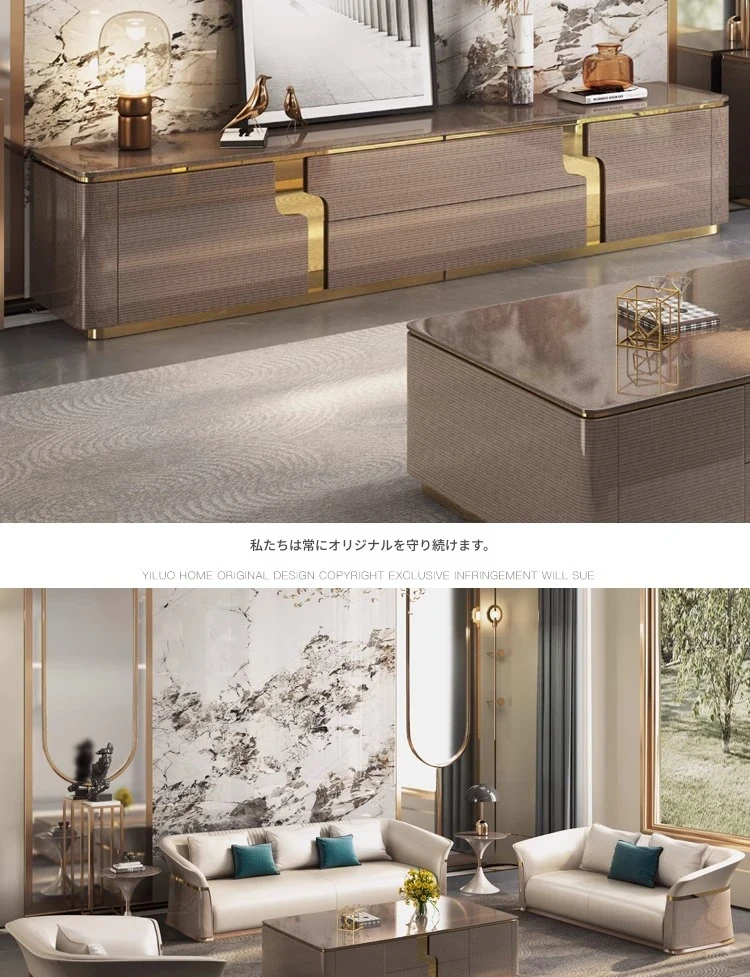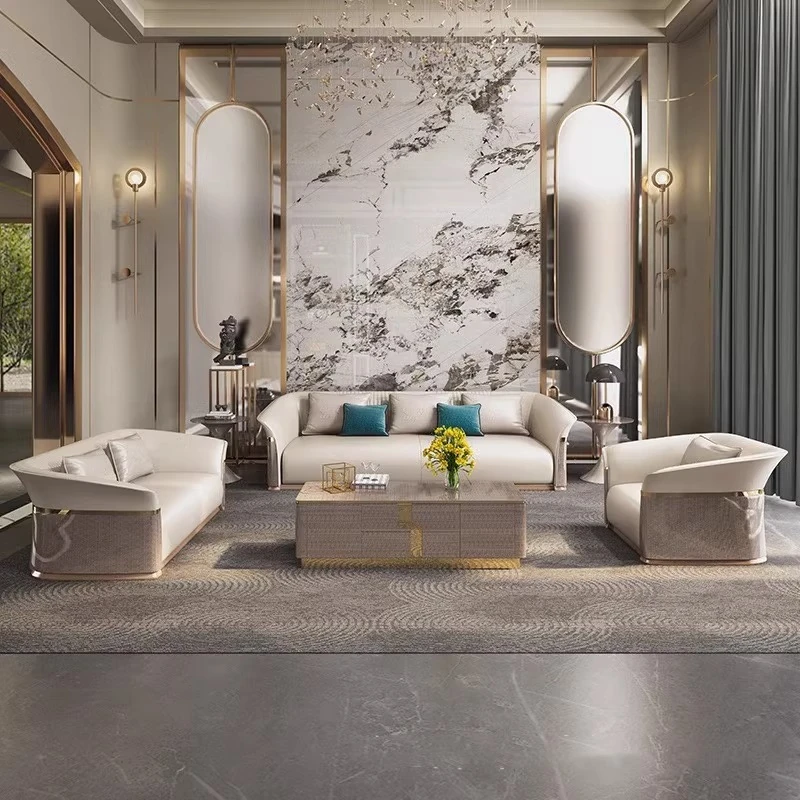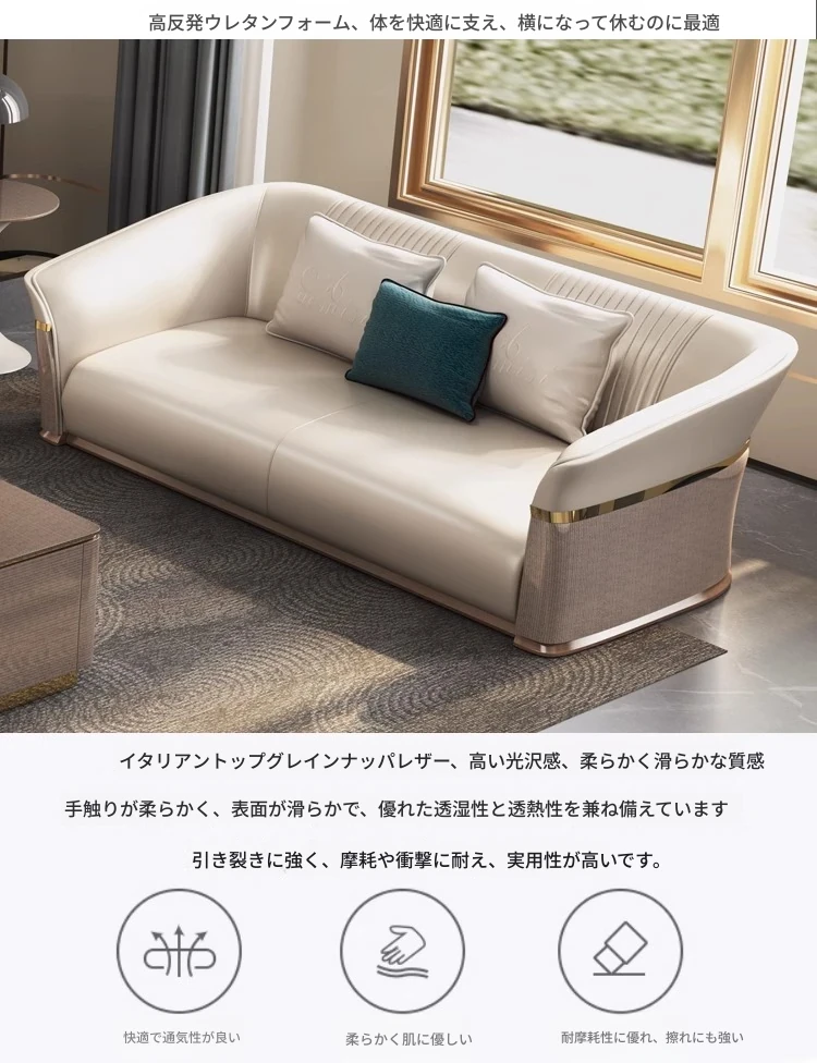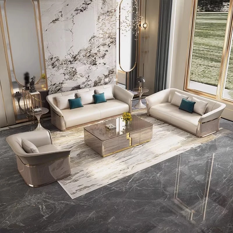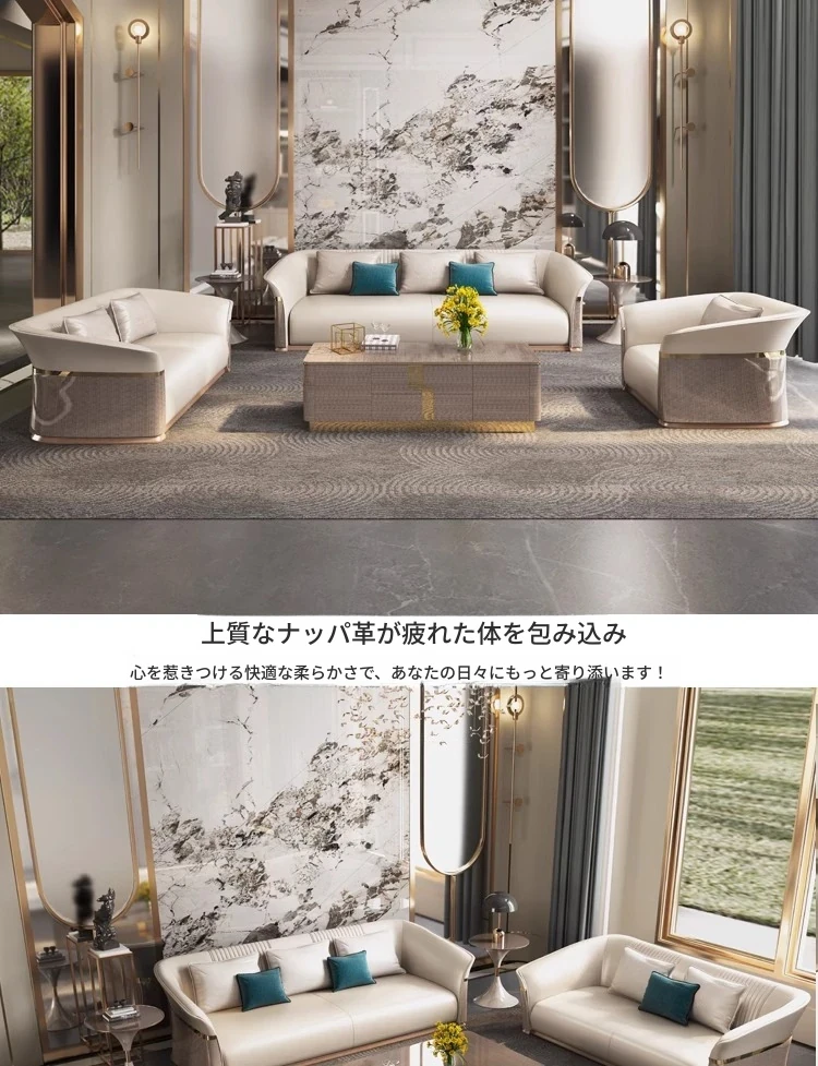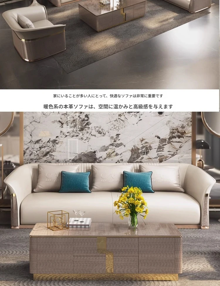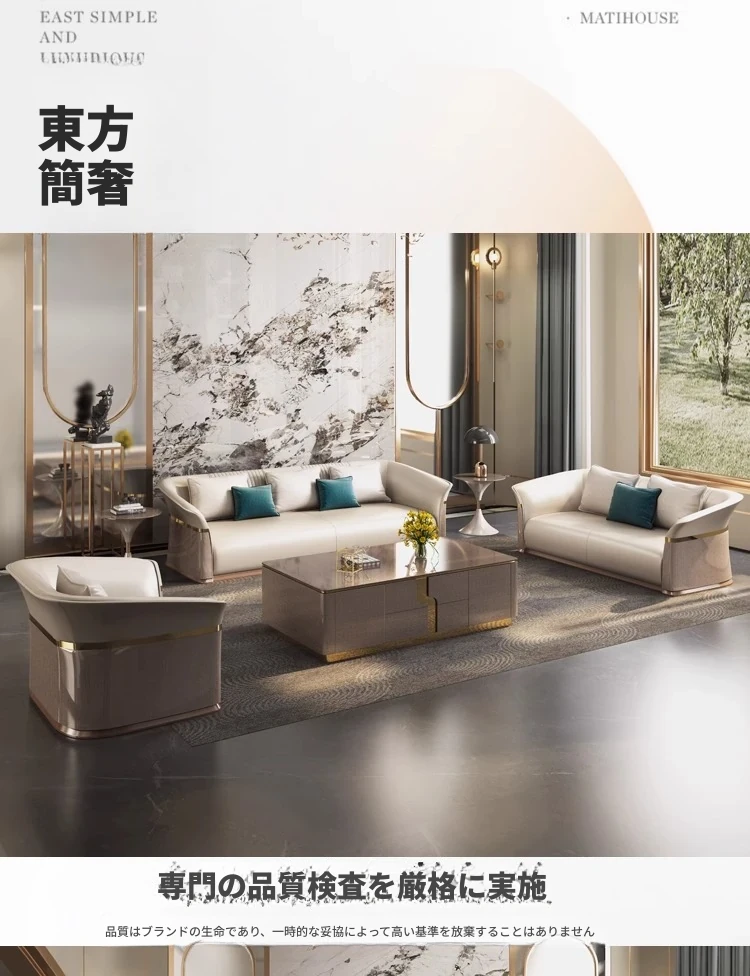 ポストモダン・シンプル・ハイエンド・ラグジュアリー真皮ソファセット - 豪華なリビングルームにぴったりのデザイナーズ家具!洗練されたデザインで、上質なひとときをお楽しみください。