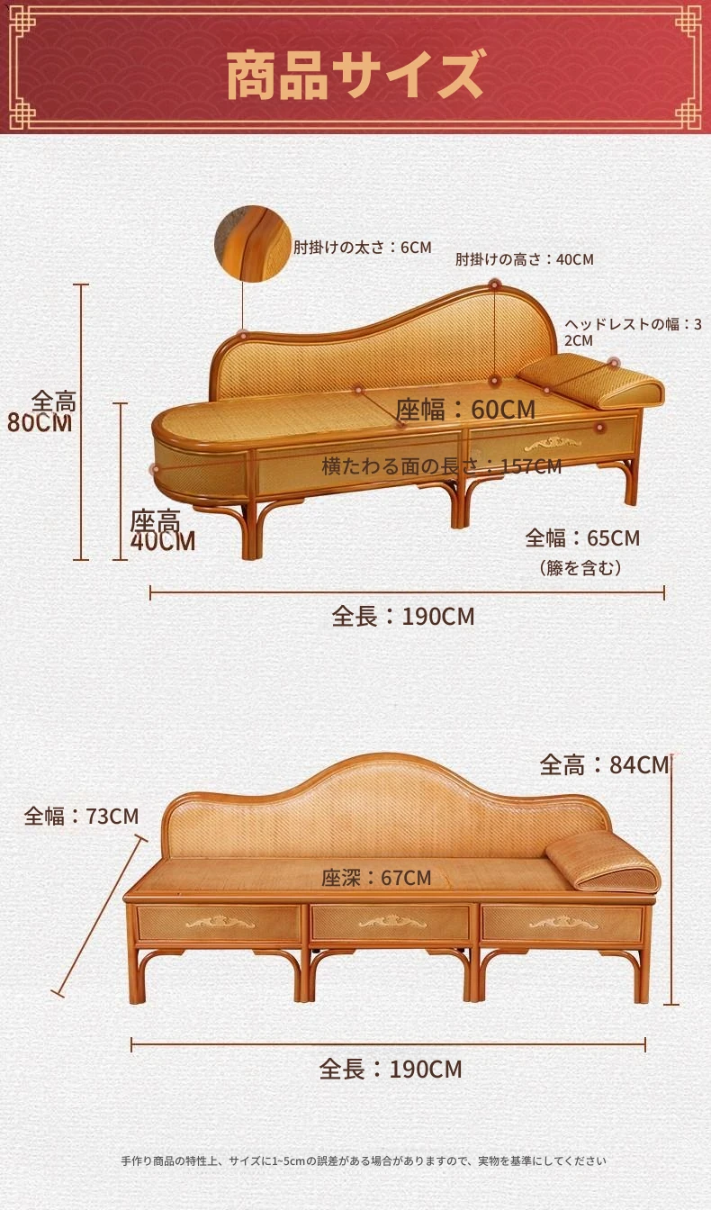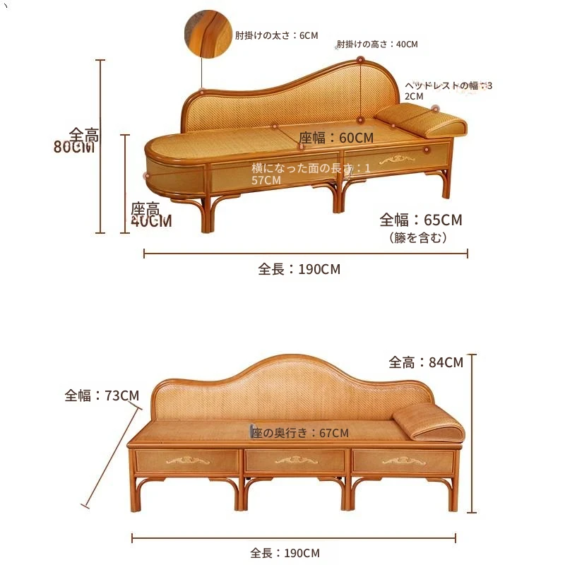 ラタンソファーカウチ1.9メートル右側(クッション)