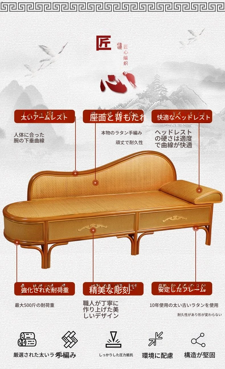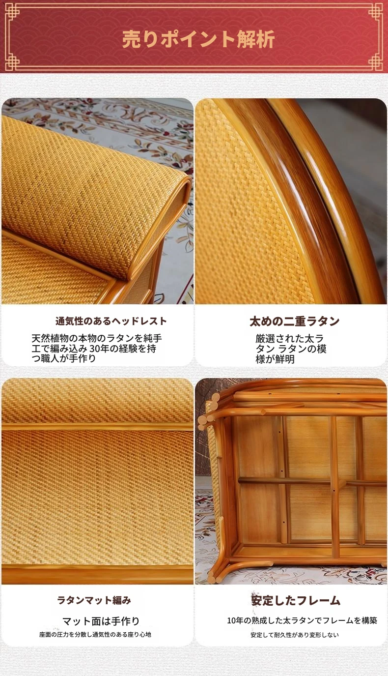 美しい藤編みのリクライニングチェア、スタイリッシュなデザインで小さなスペースにもぴったり!リラックスできる寝心地で、寝室やリビングルームに最適なアイテムです。