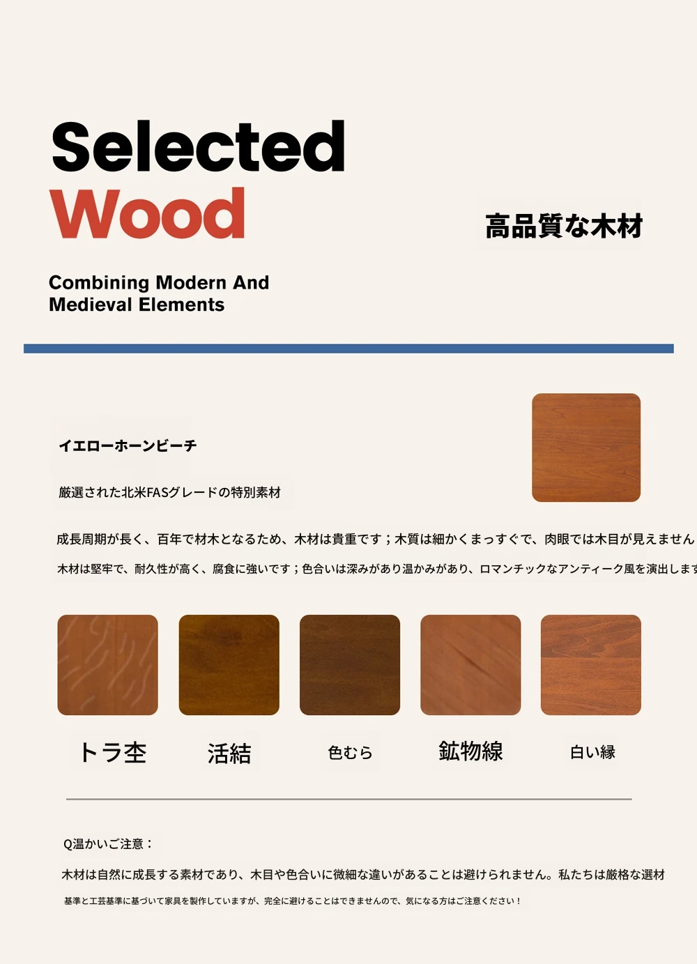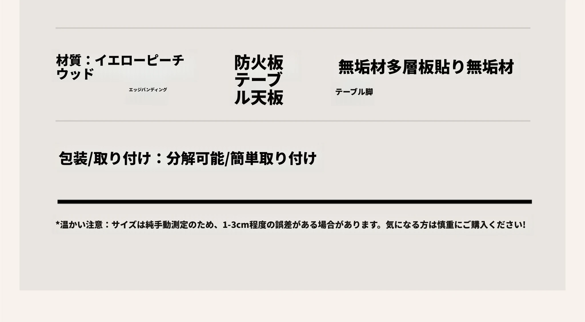 1.8mの無縁ダイニングテーブル【黄楊木】(在庫あり)