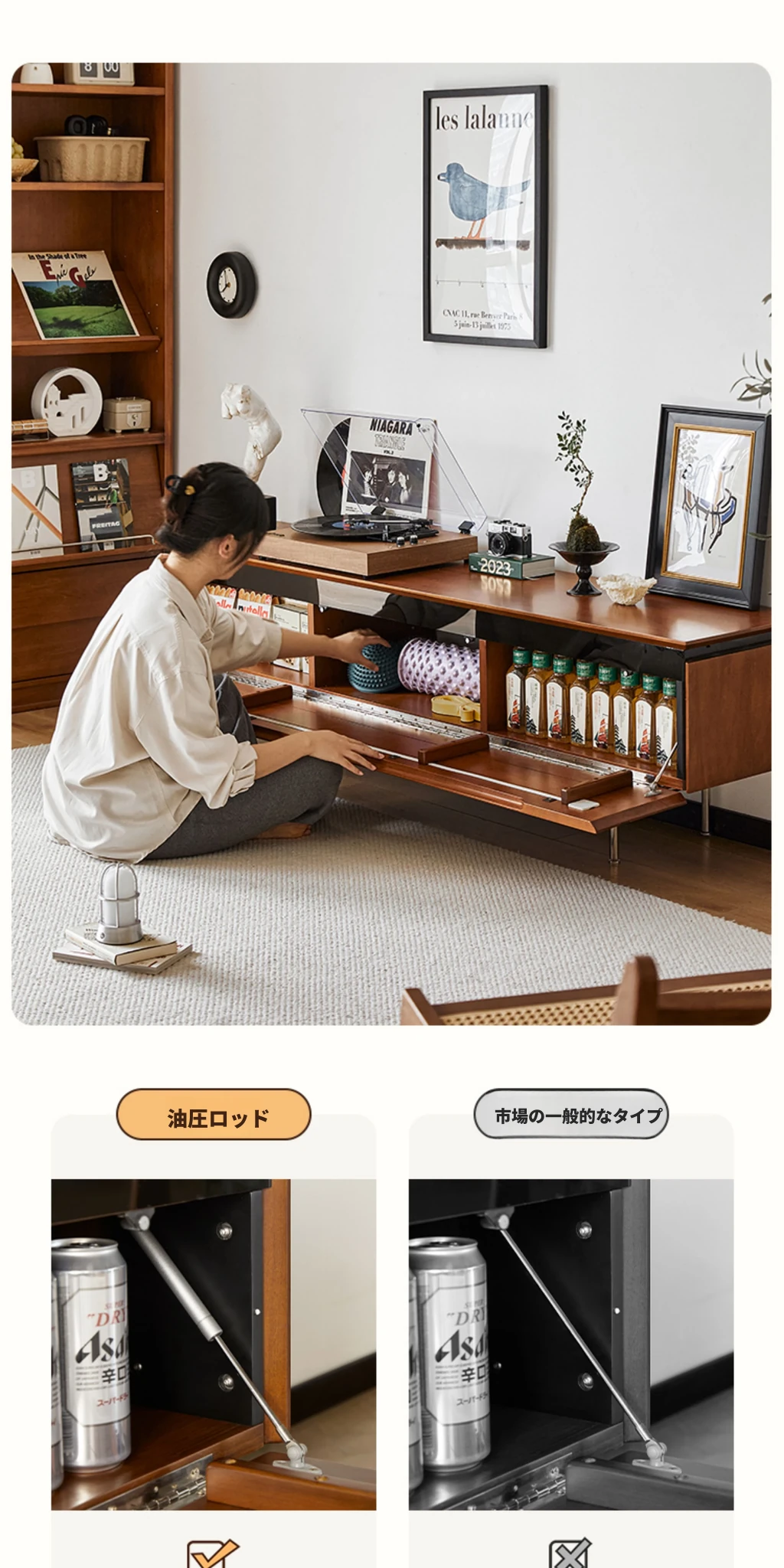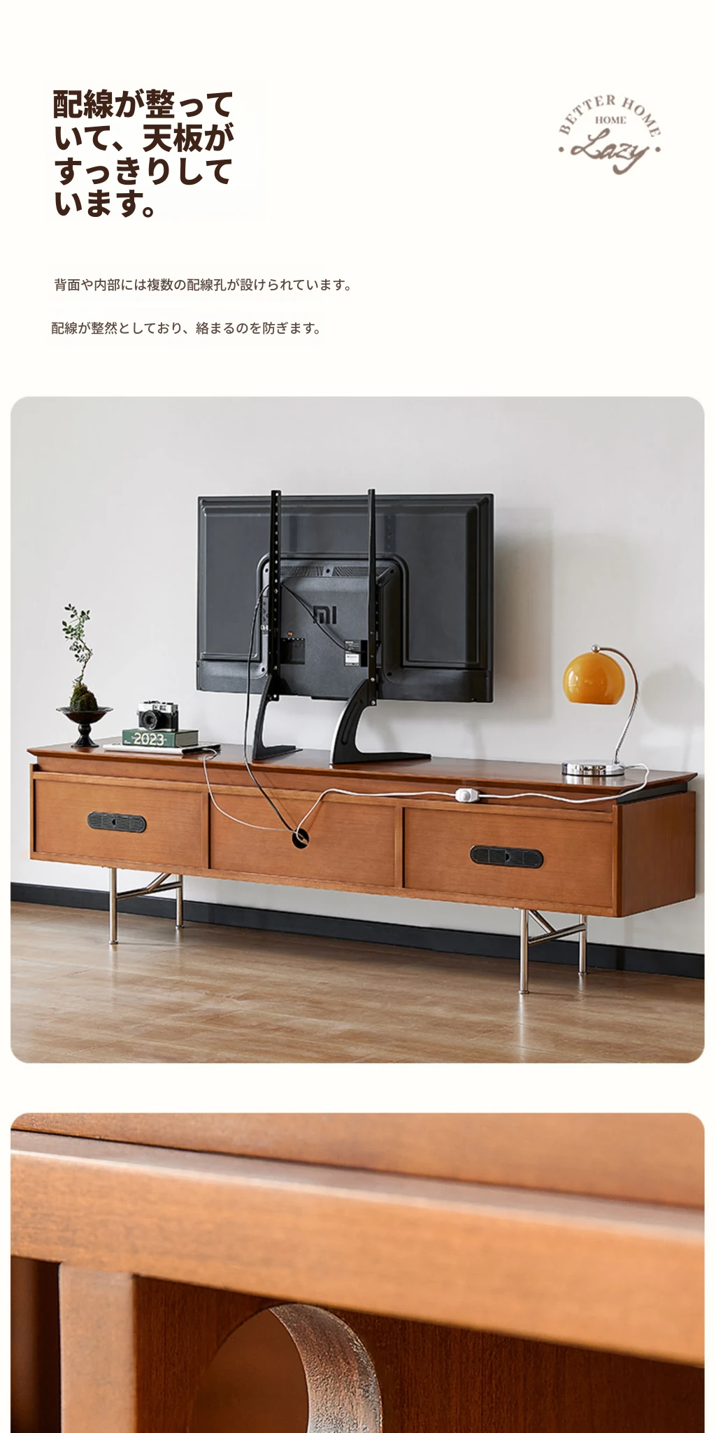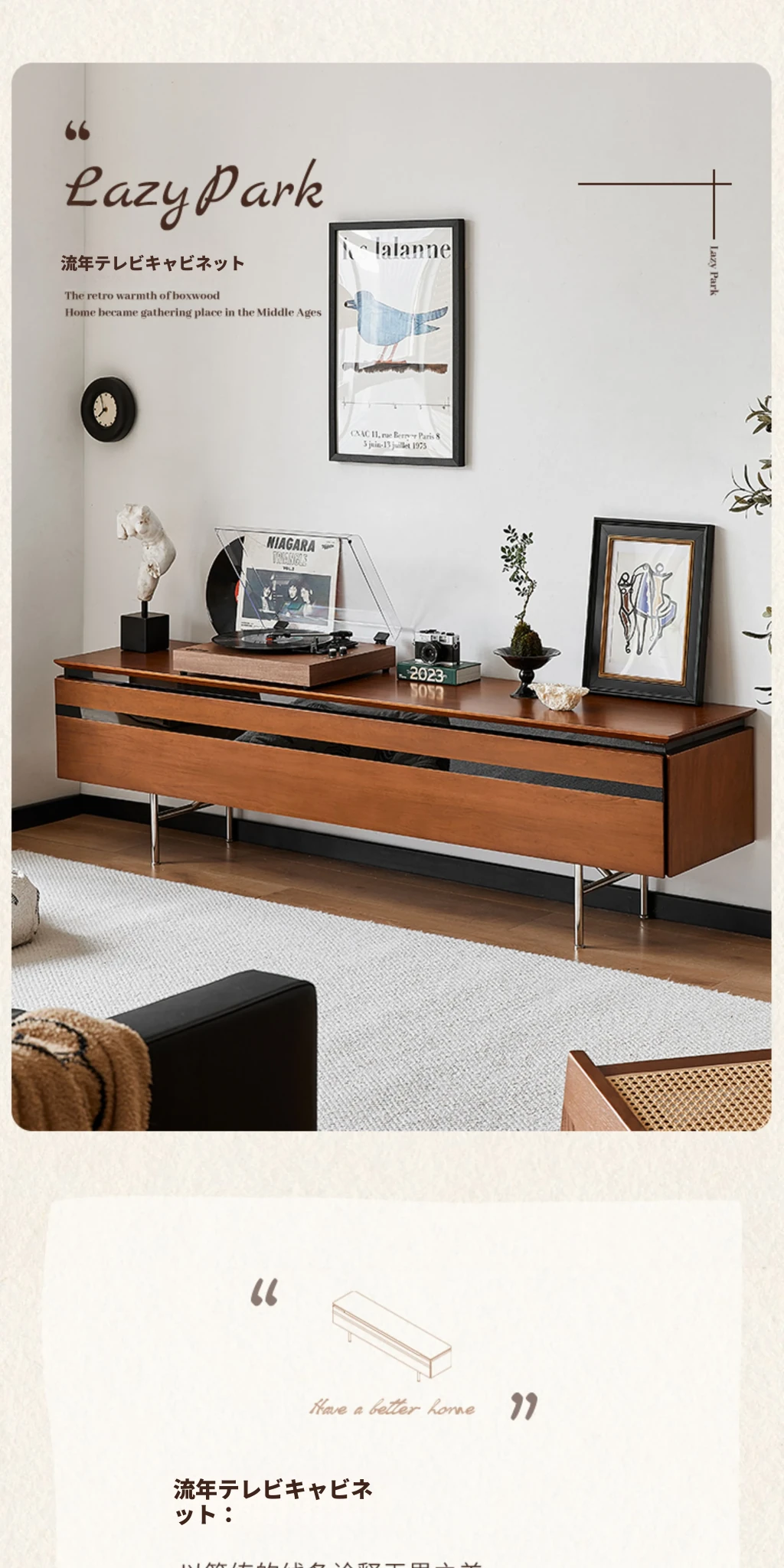 (さよなら特価)栗の公園テレビキャビネット レトロな無垢材サイドキャビネット 小型リビングに最適なミッドセンチュリー・バウハウススタイル