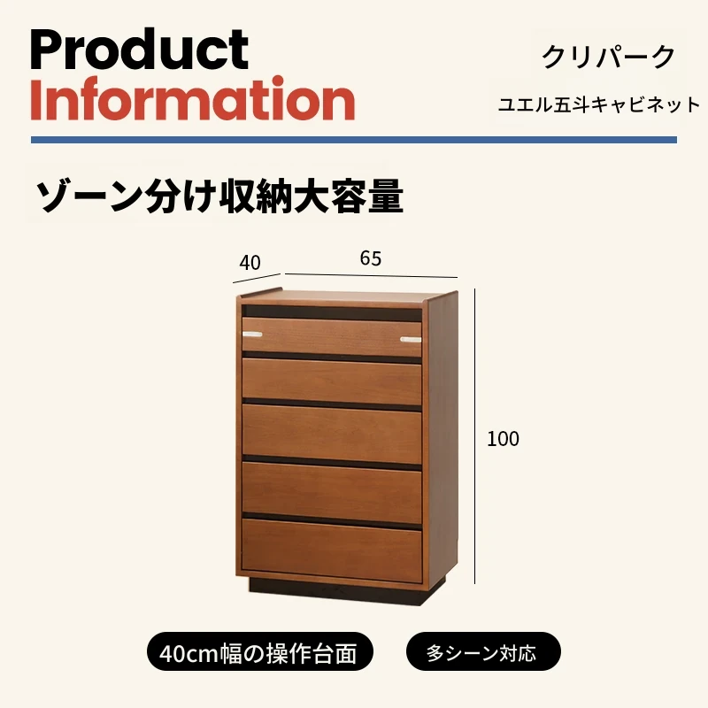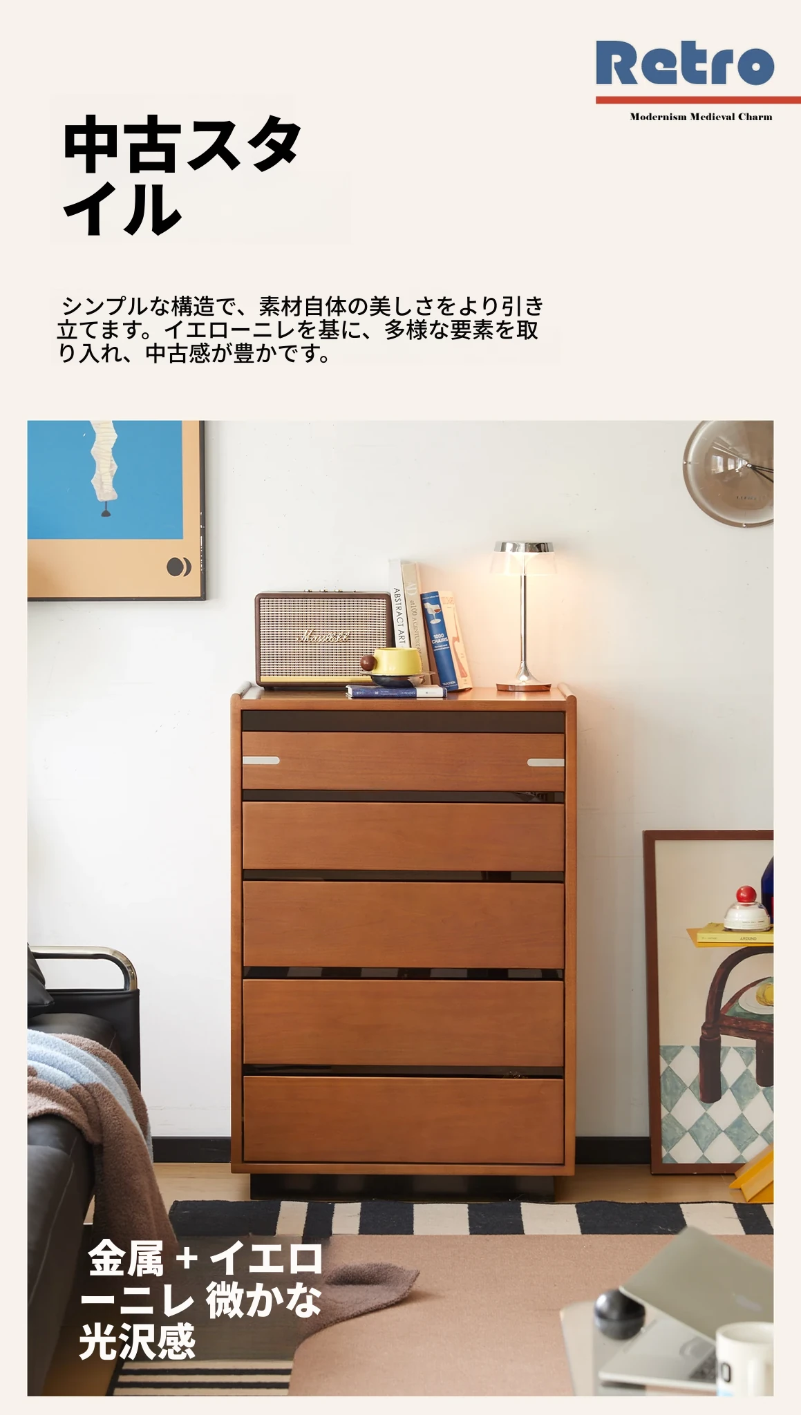 悦尔五斗柜【黄杨木】 (在庫あり)