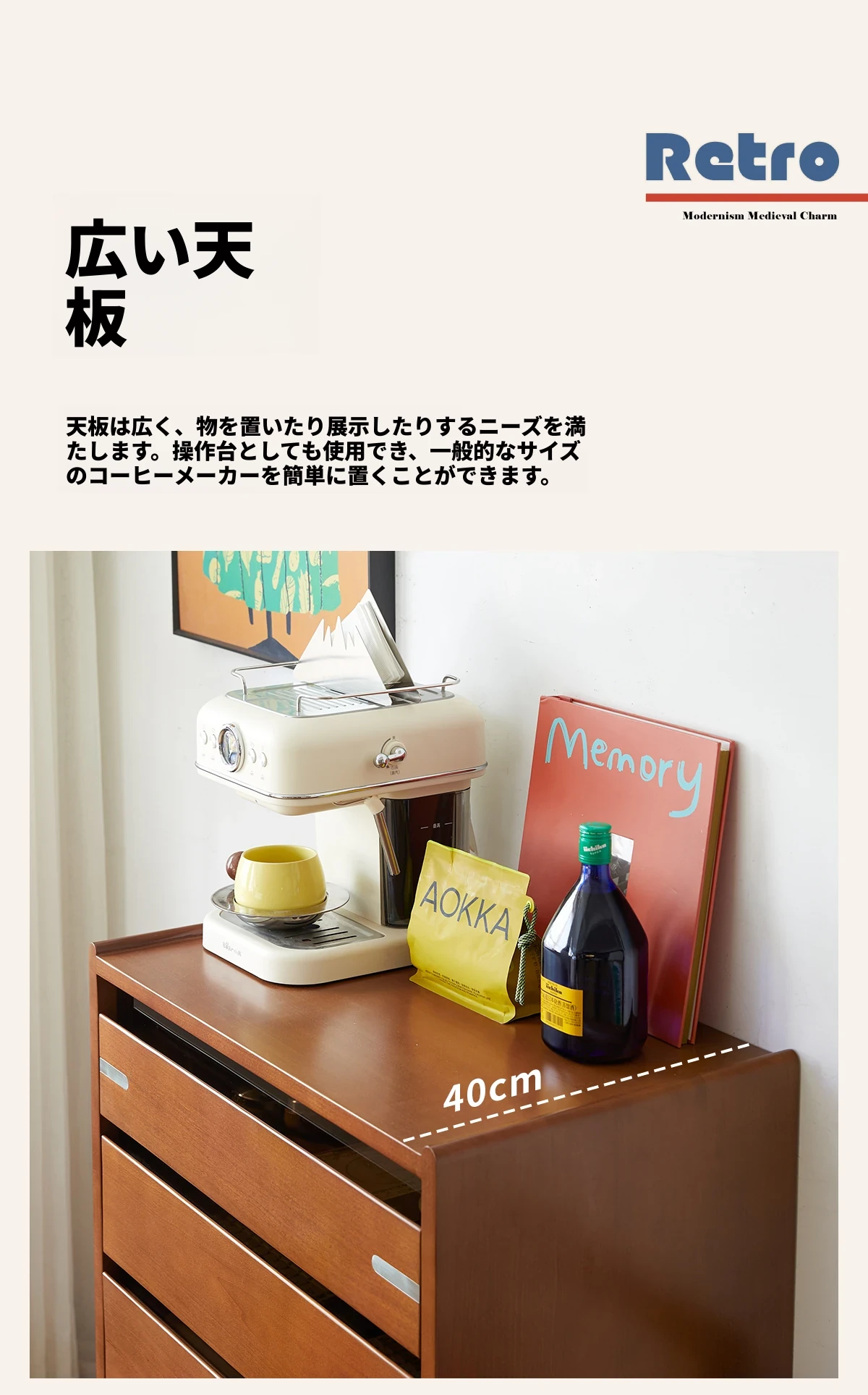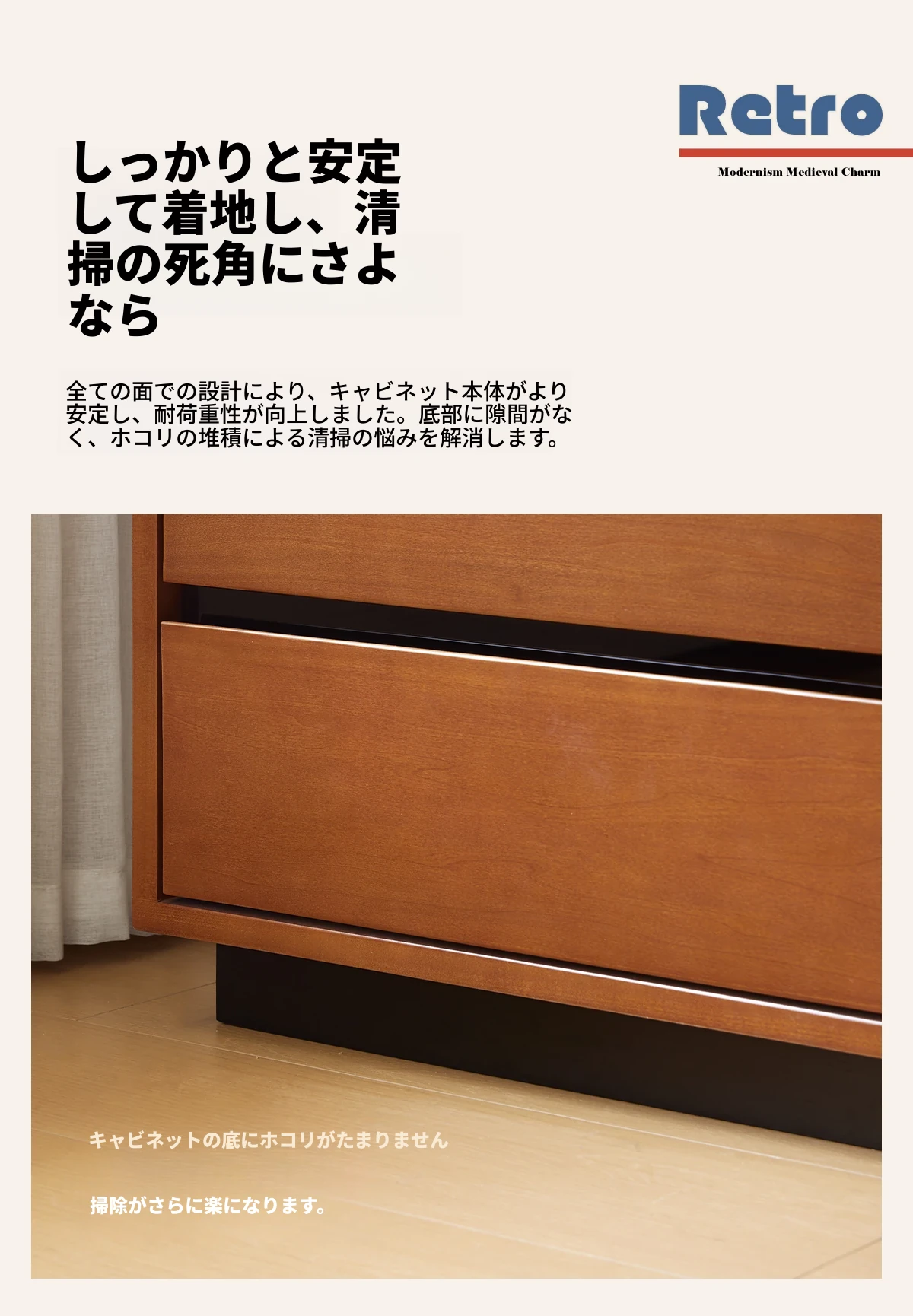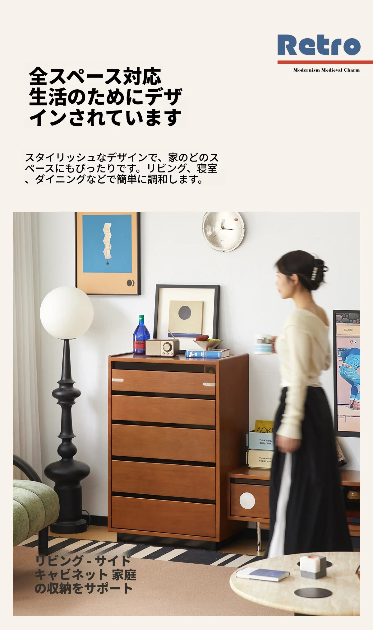 栗の公園の無垢材レトロスタイル・リビング収納サイドキャビネット、壁沿いに置ける小型住宅向けのフロアストレージキャビネット。洗練されたデザインで、あなたの空間を美しく彩ります!