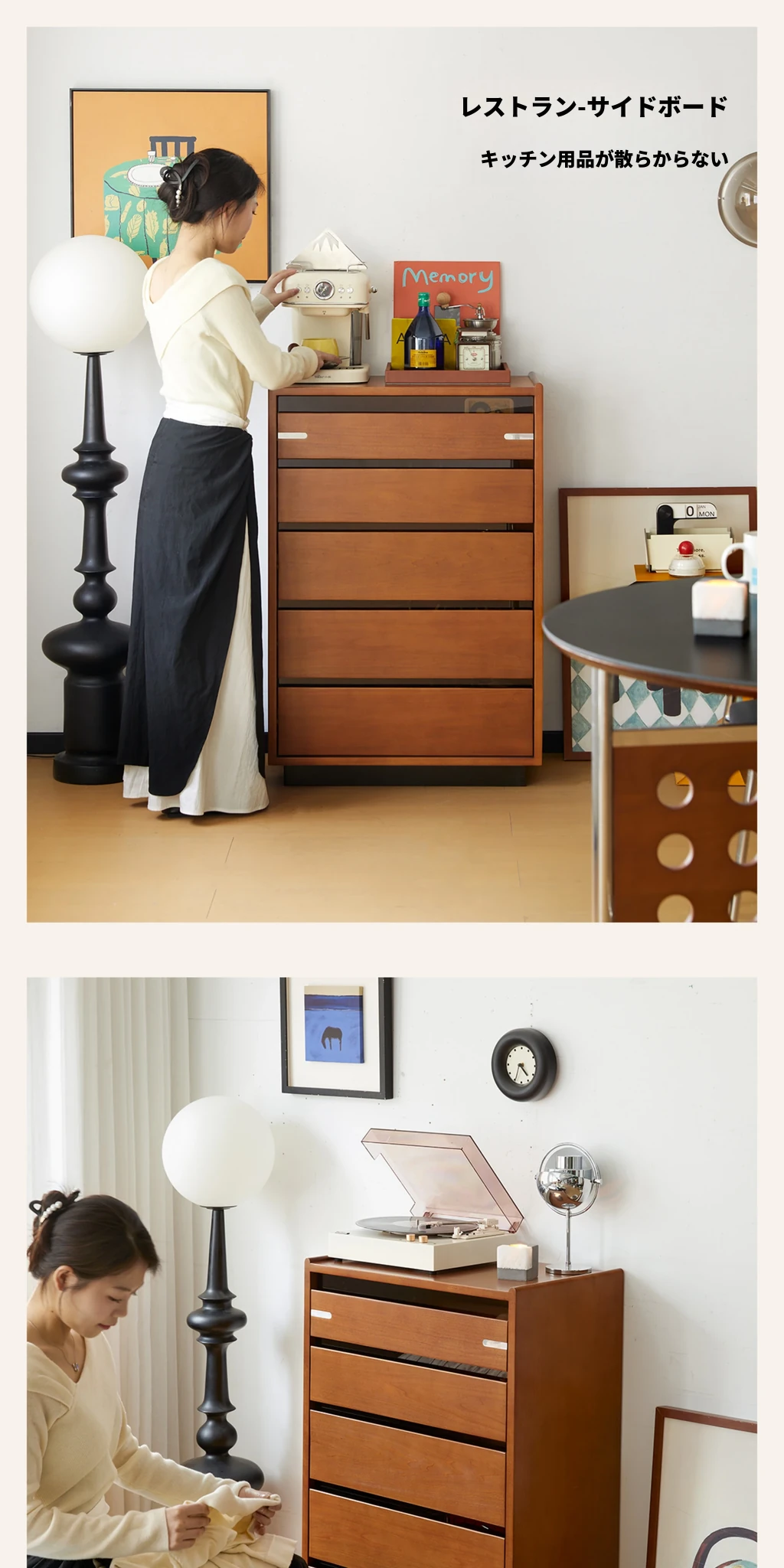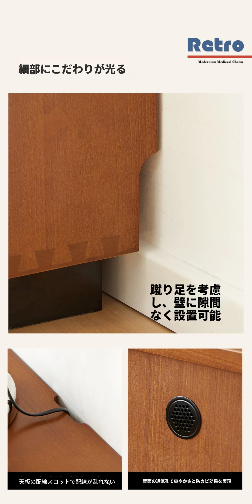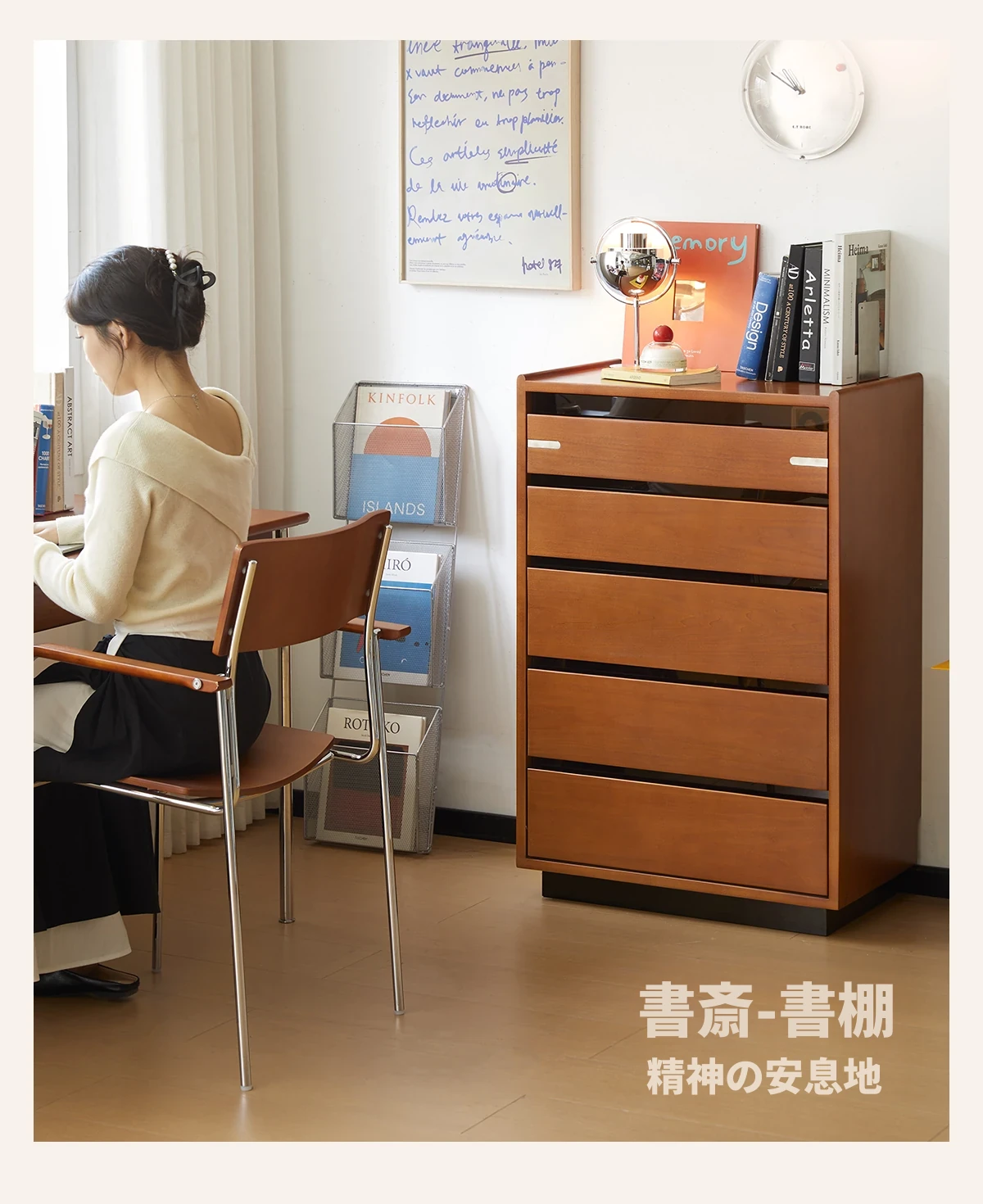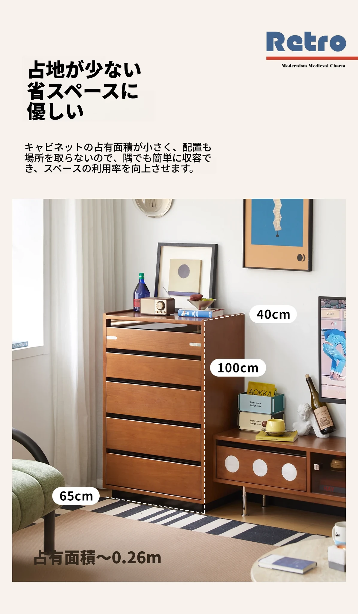 栗の公園の無垢材レトロスタイル・リビング収納サイドキャビネット、壁沿いに置ける小型住宅向けのフロアストレージキャビネット。洗練されたデザインで、あなたの空間を美しく彩ります!