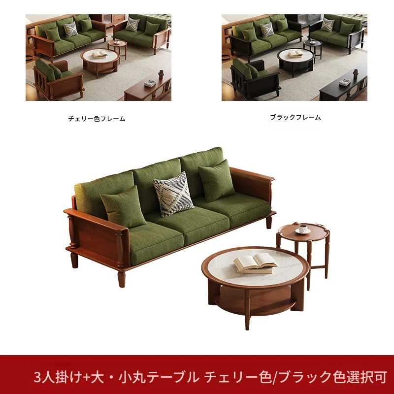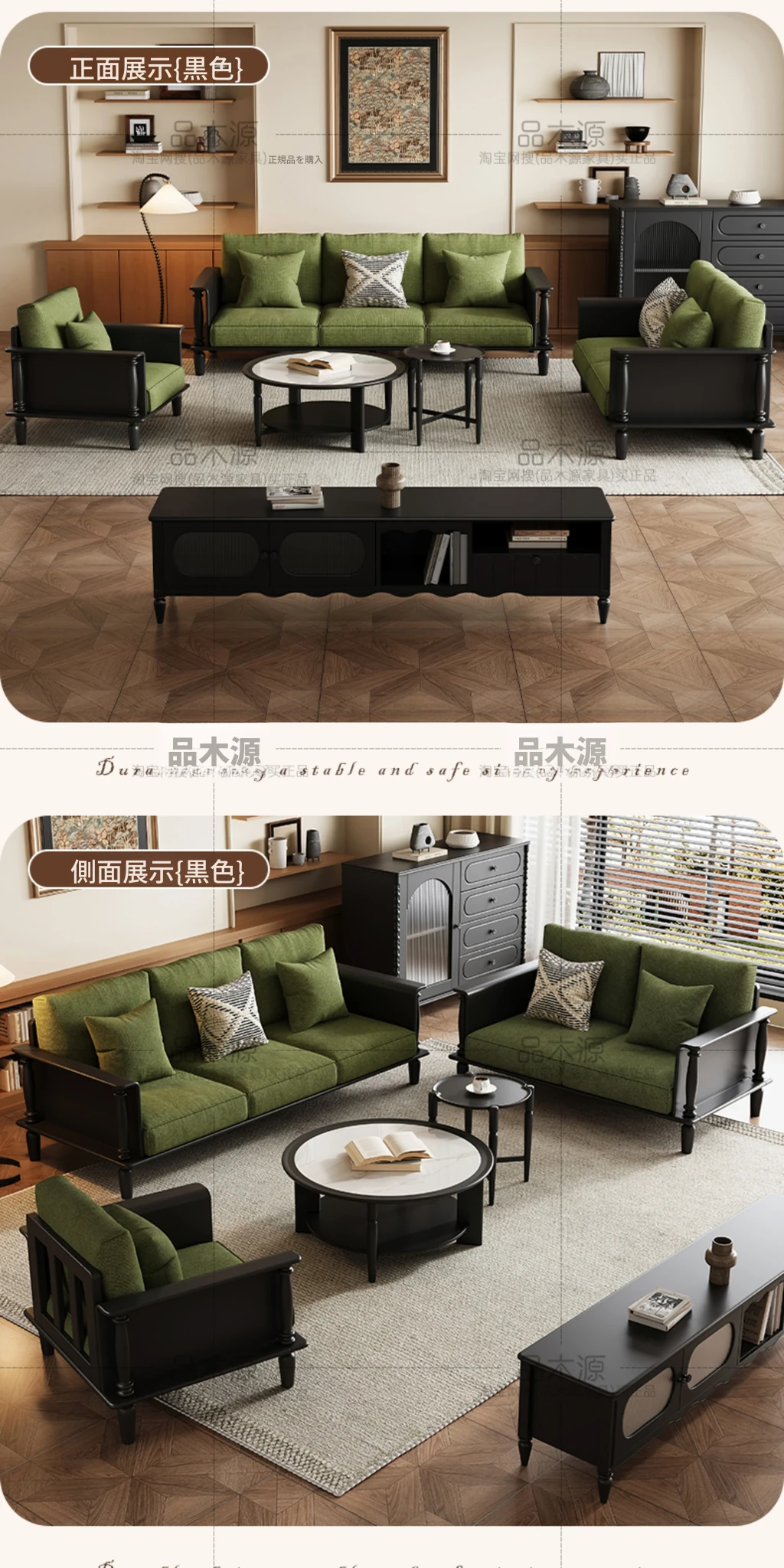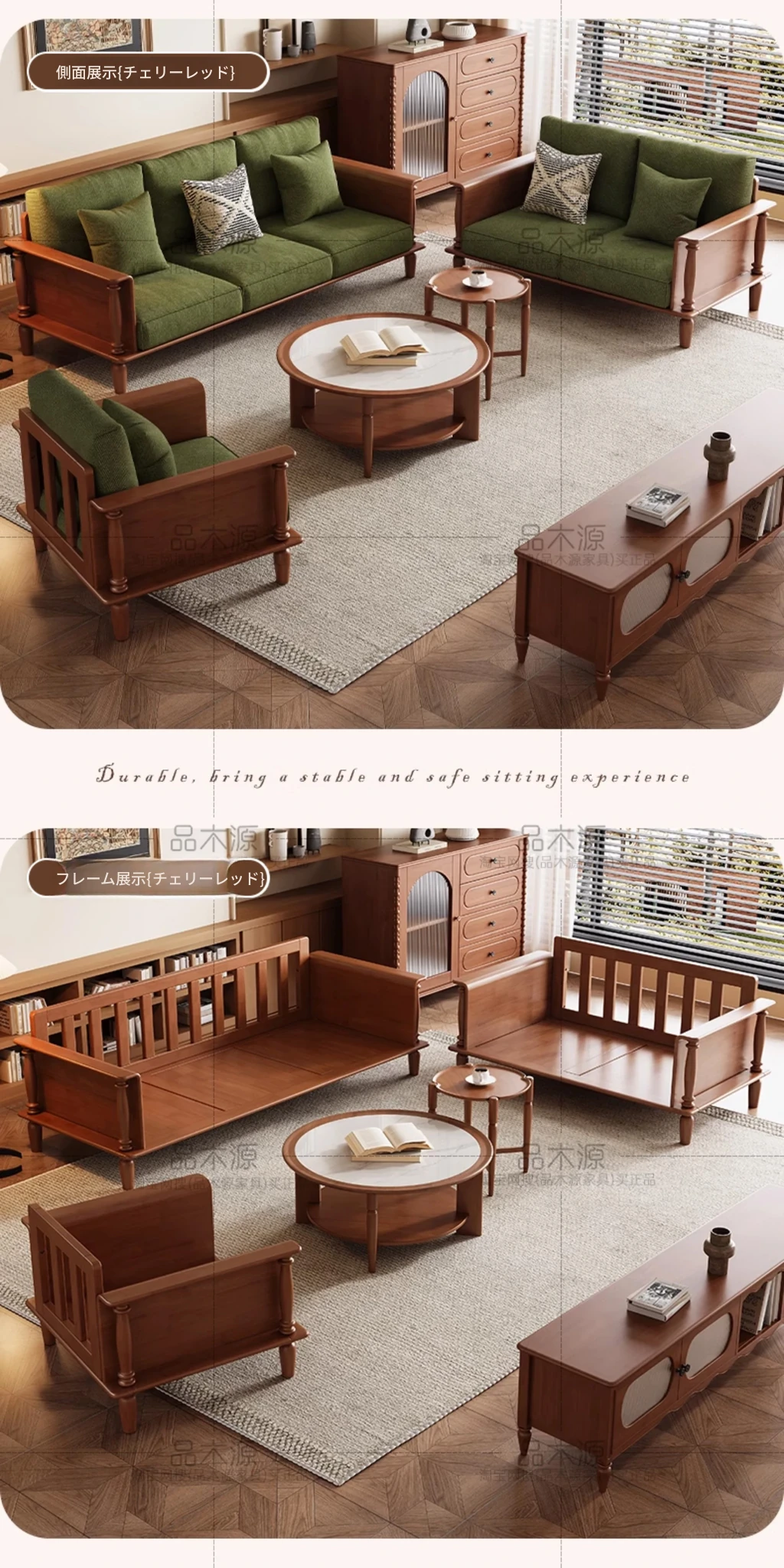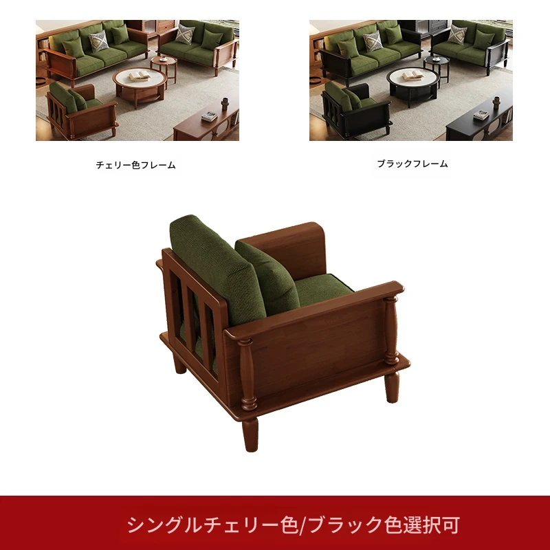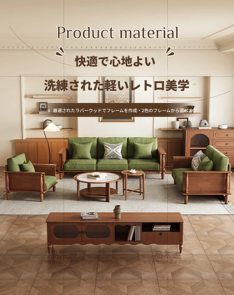 アメリカンヴィンテージ全木製ソファセット 中古風リビング 小型3人掛けストレートグリーンクラウドソファ - おしゃれで快適な空間を演出!
