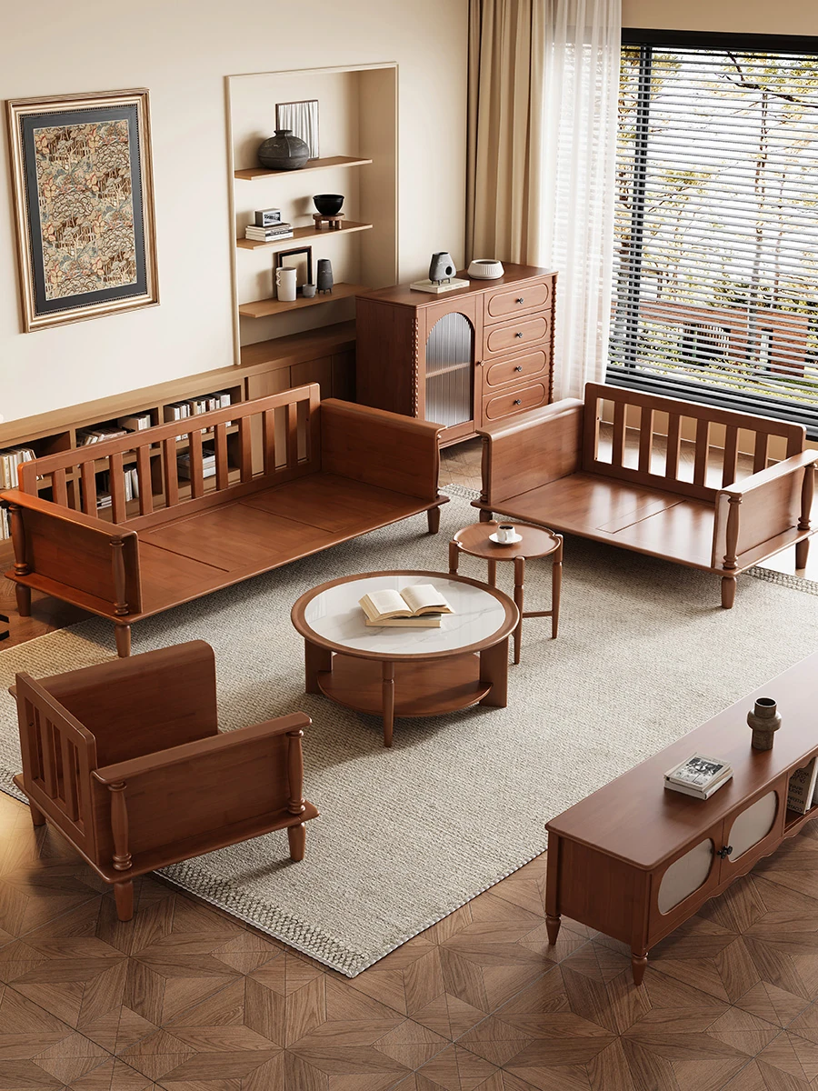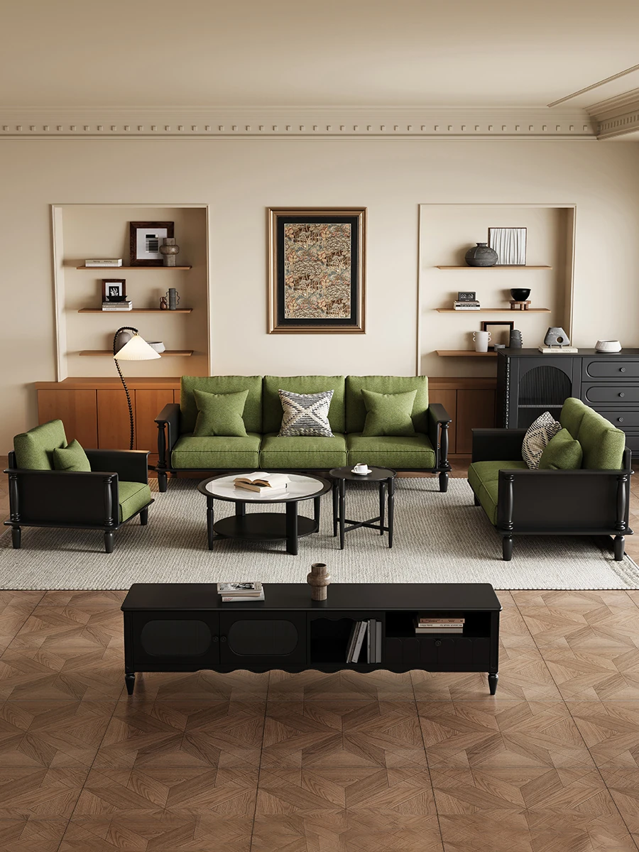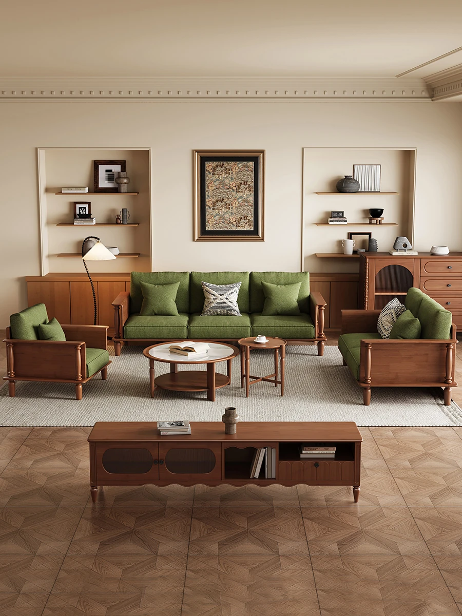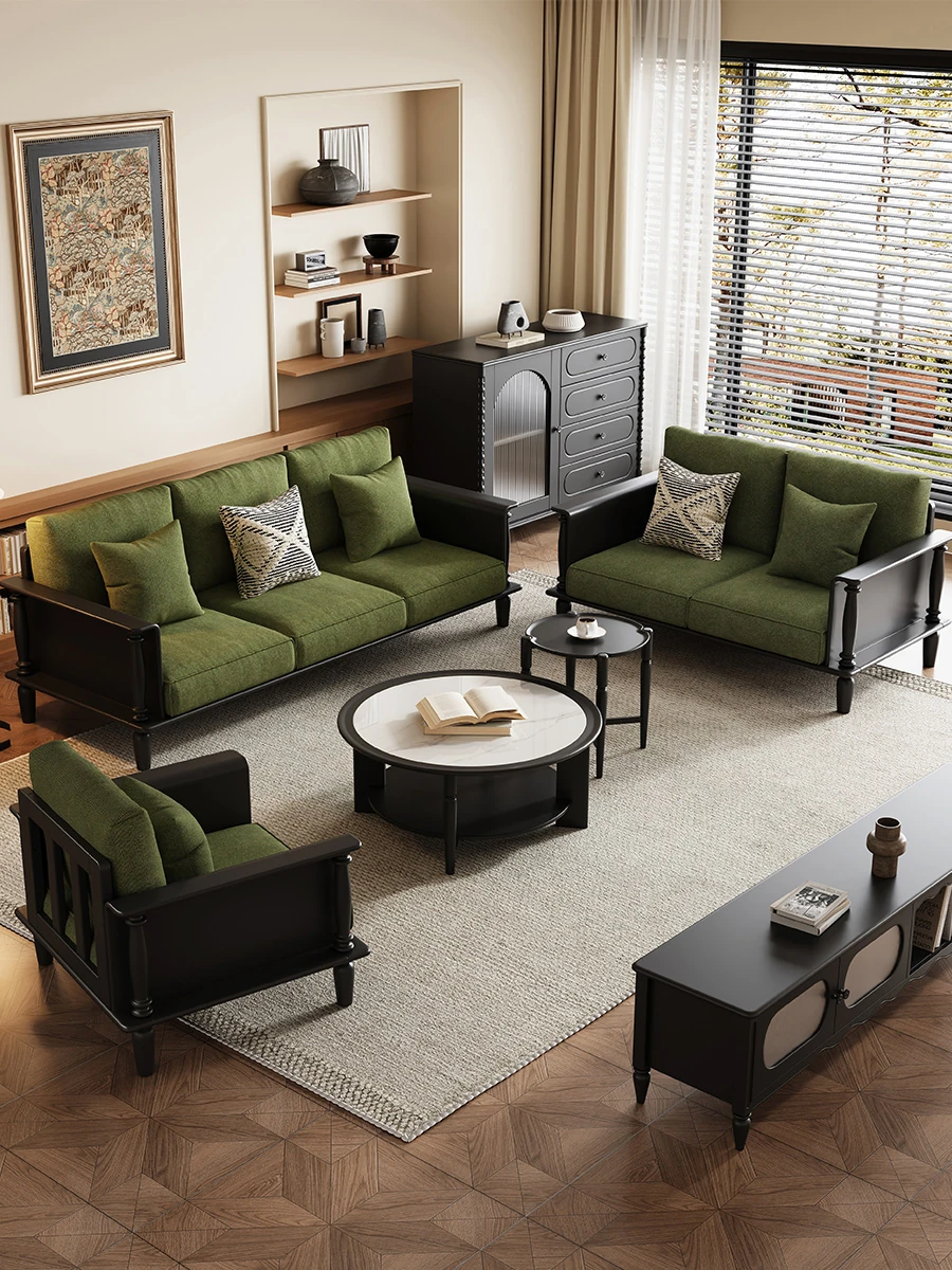 アメリカンヴィンテージ全木製ソファセット 中古風リビング 小型3人掛けストレートグリーンクラウドソファ - おしゃれで快適な空間を演出!