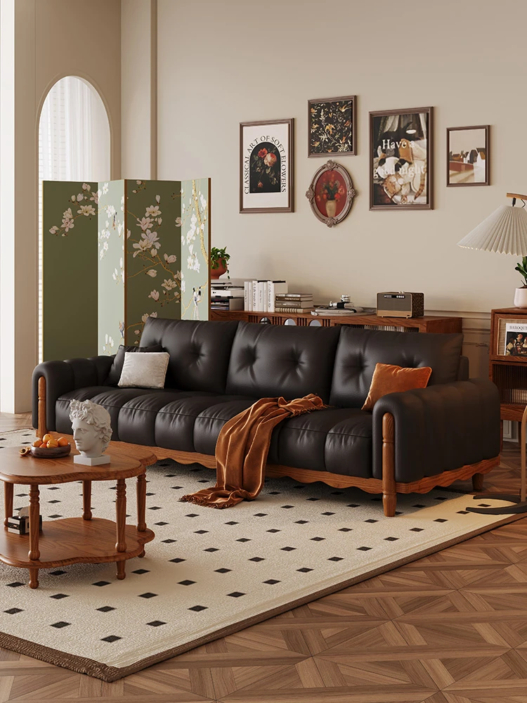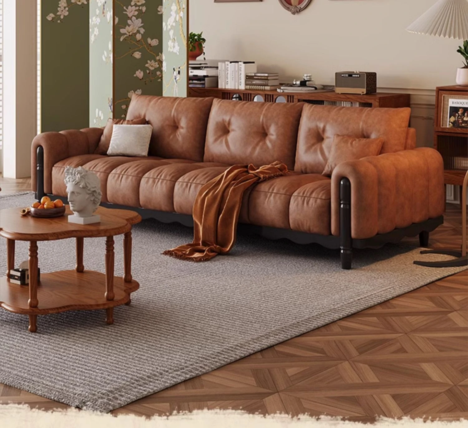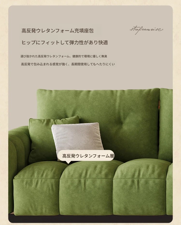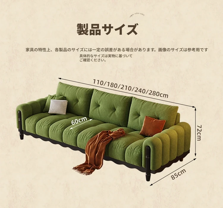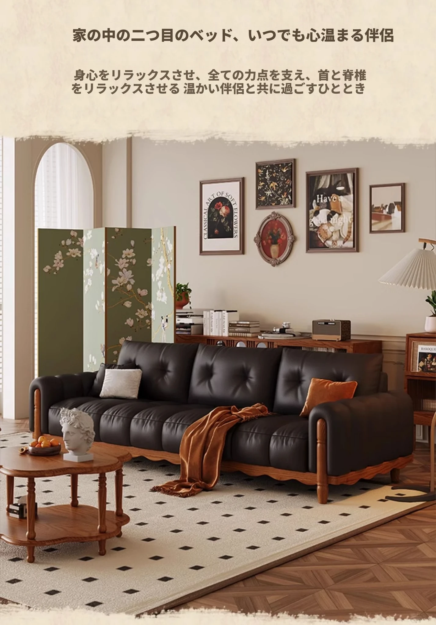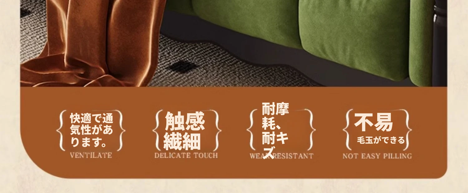 2024年新作!フレンチヴィンテージスタイルの無垢材ソファ - リビングにぴったりなグリーンの布張りピアノキー直列ソファ。クラシックな美しさと快適な座り心地を兼ね備えた一品です!