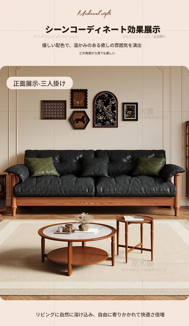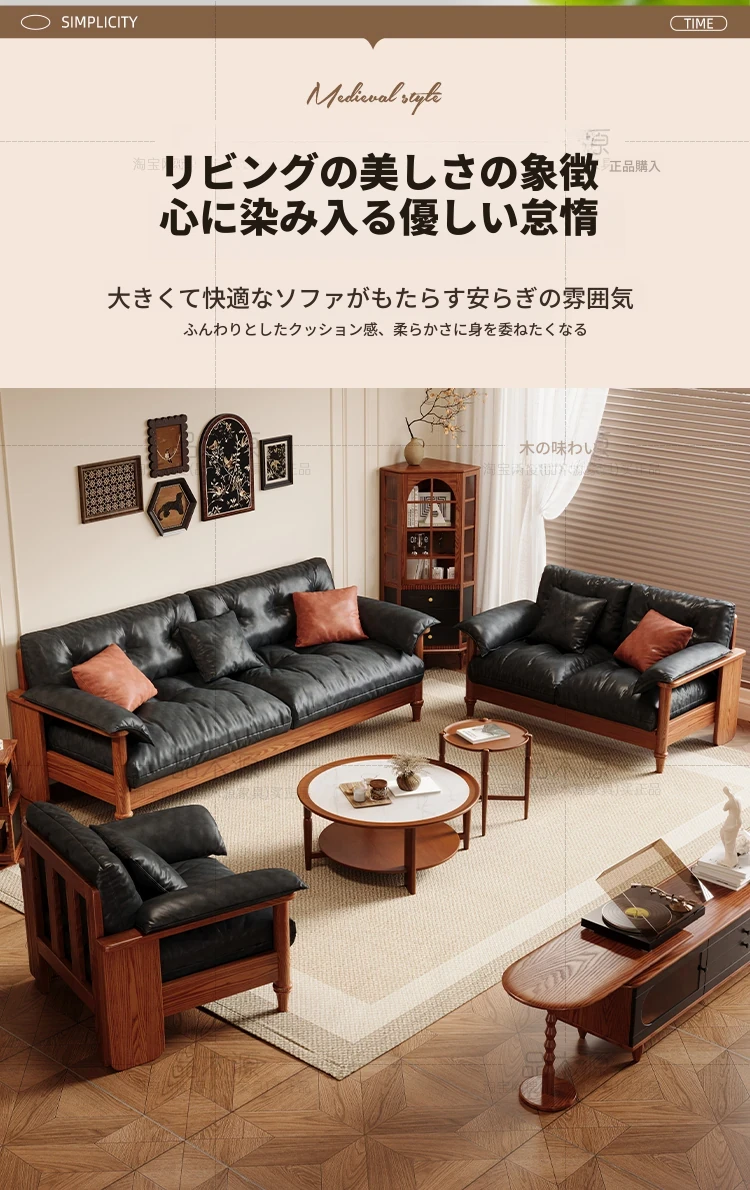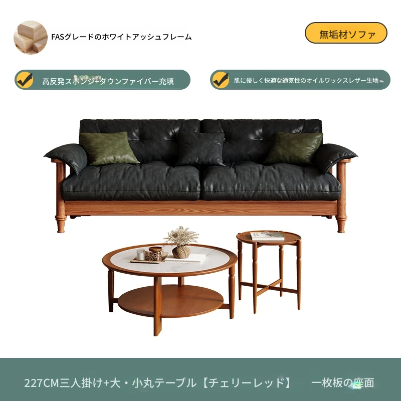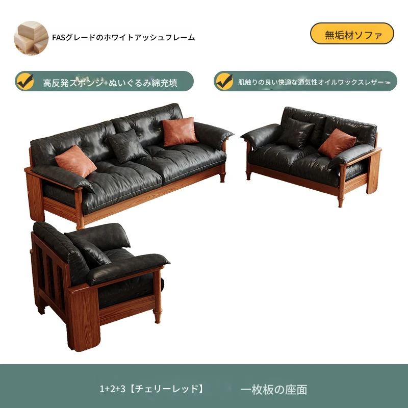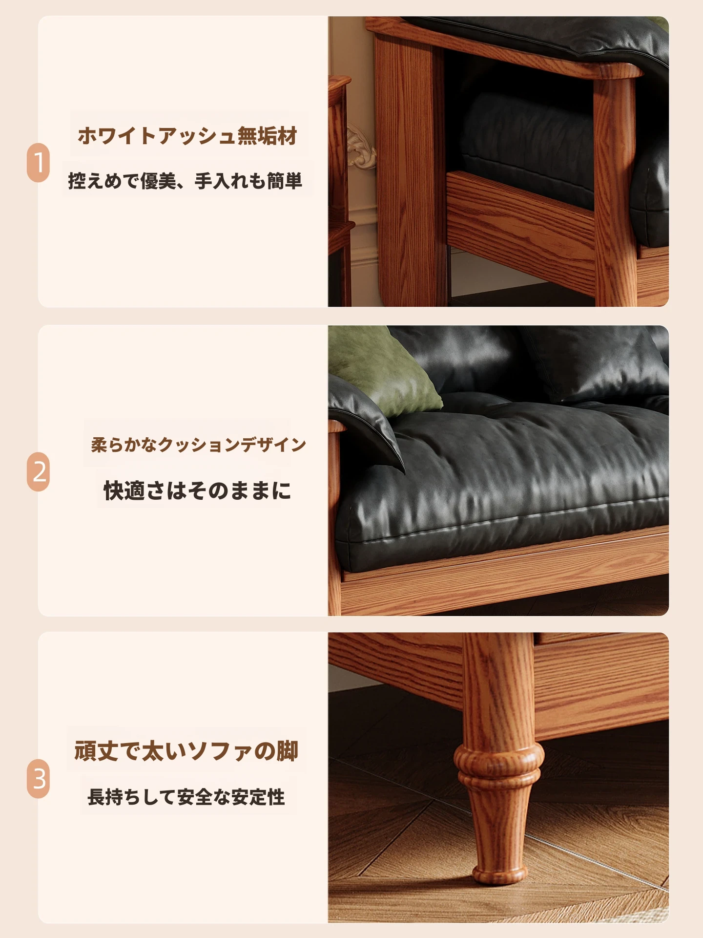 アンティーク風オイルワックス仕上げの無垢材ソファ3人掛け、フランス式レトロデザインのリビング用ホワイトアッシュ無垢材ソファセット。上質な素材と洗練されたデザインで、居心地の良い空間を演出します!