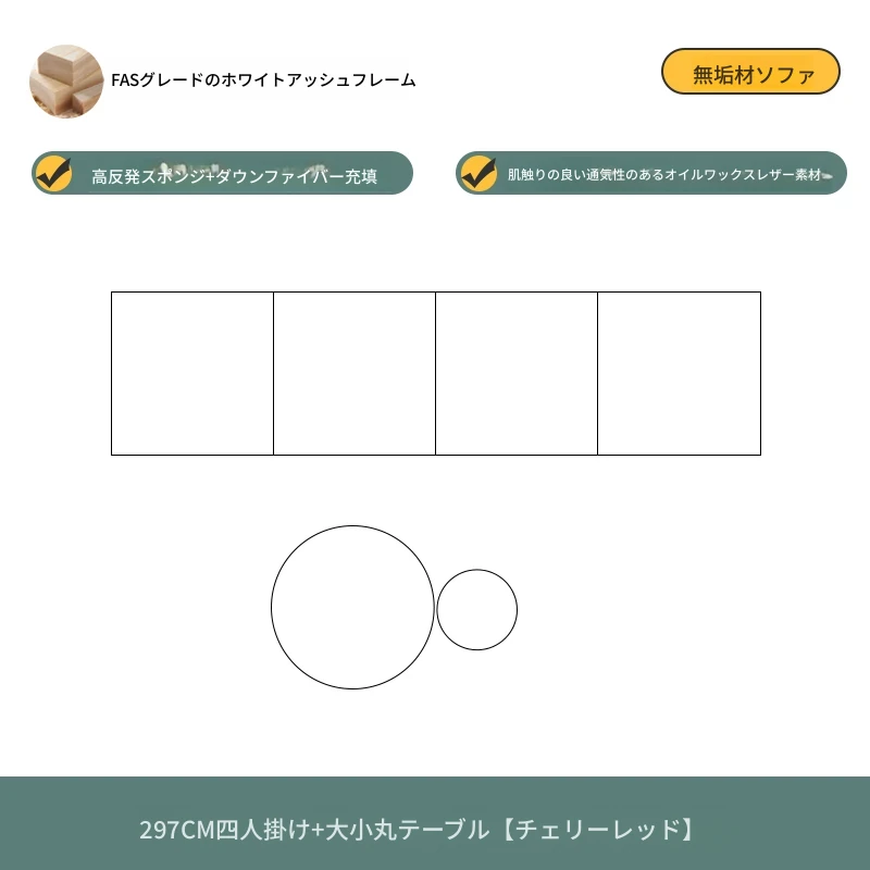 227CMトリプルソファ+大・小ラウンドテーブル【チェリーレッド】