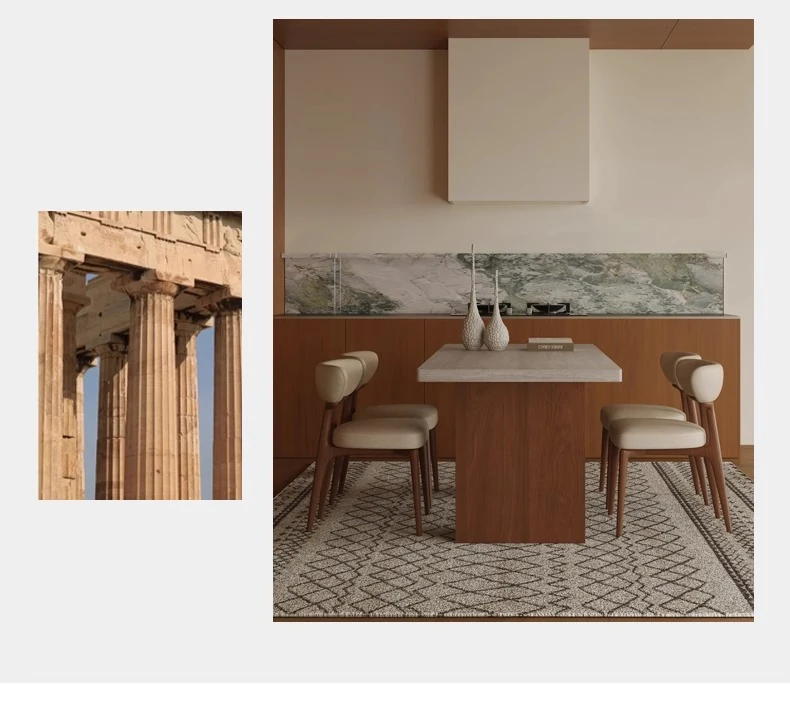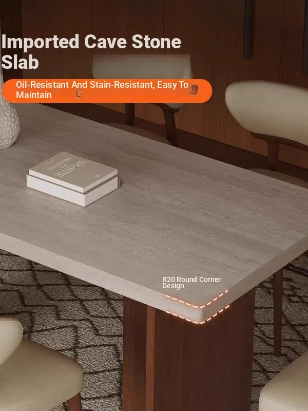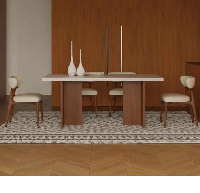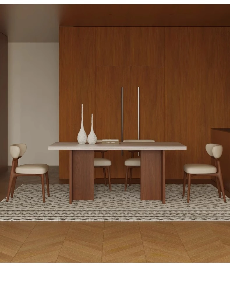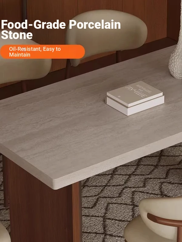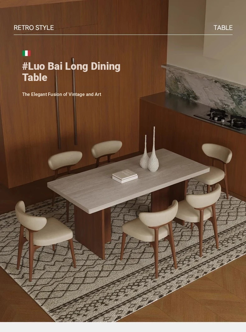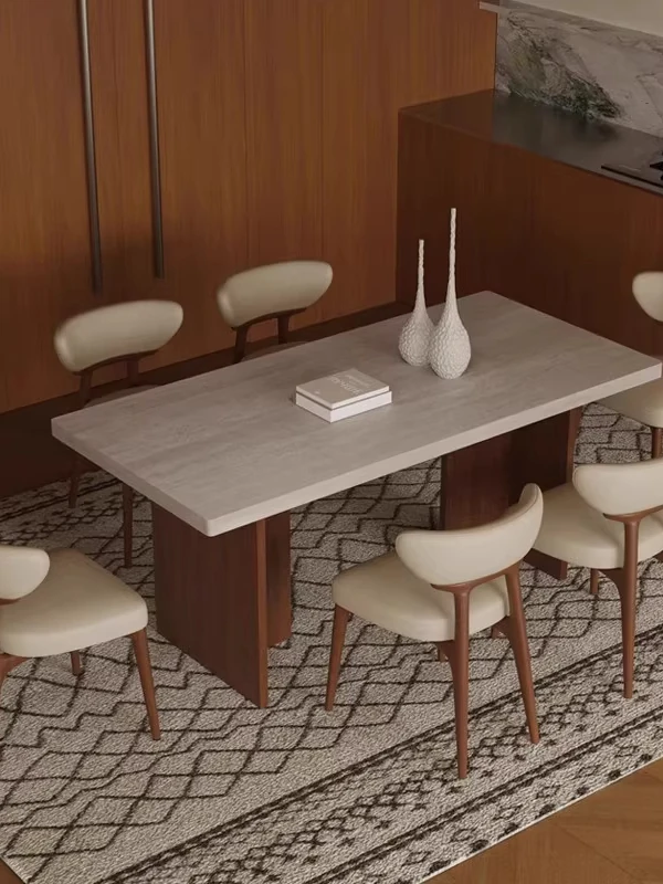 Vintage Solid Wood Dining Table Set with Hollow Stone Surface - Simple Rectangle Design for Small Spaces, Perfect for Home Use