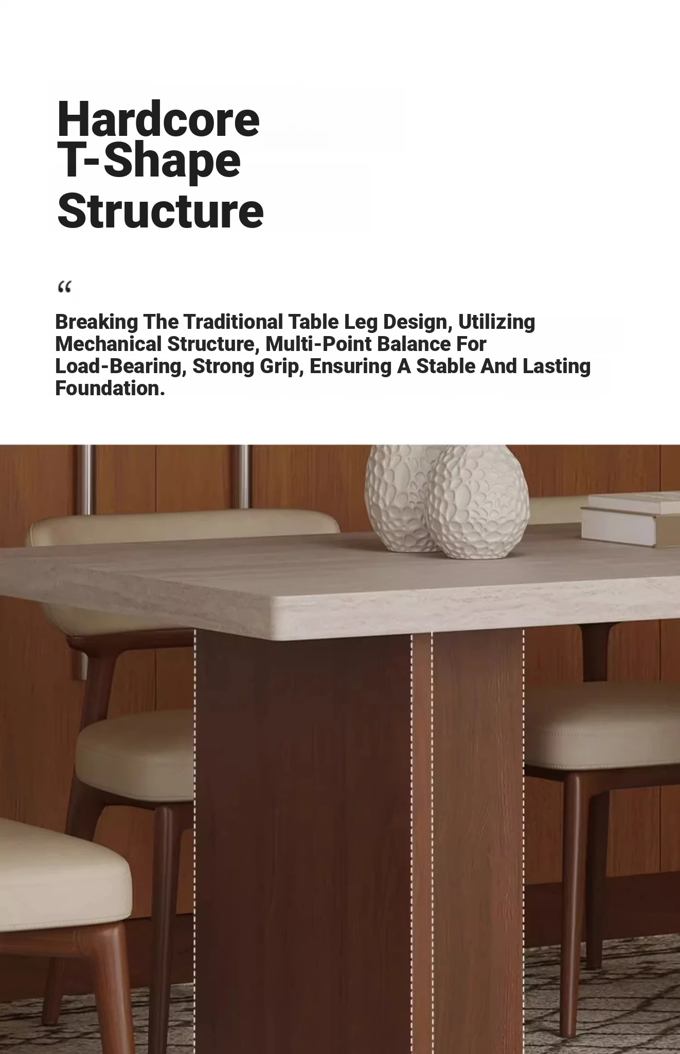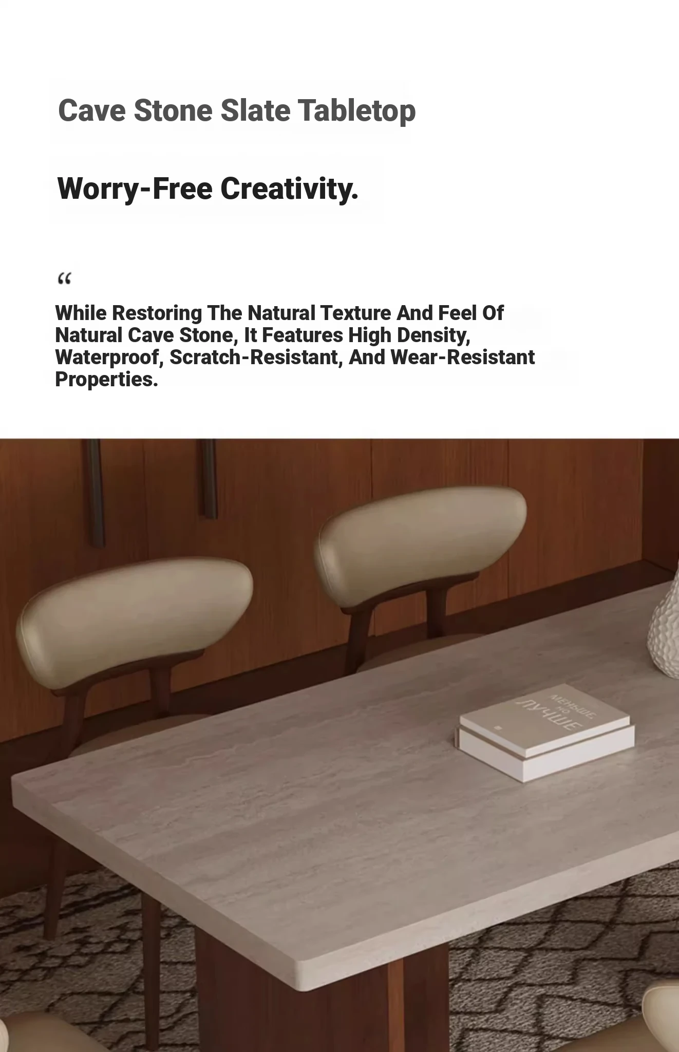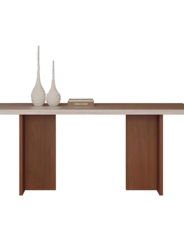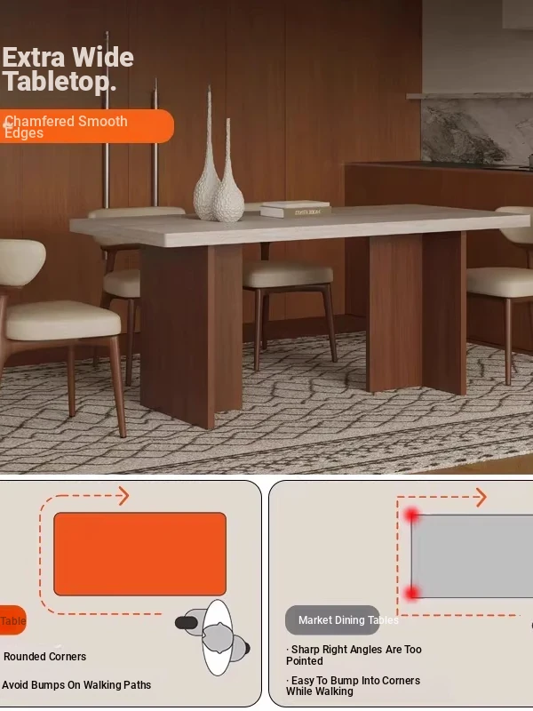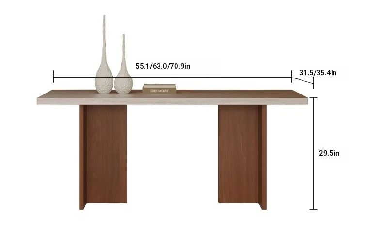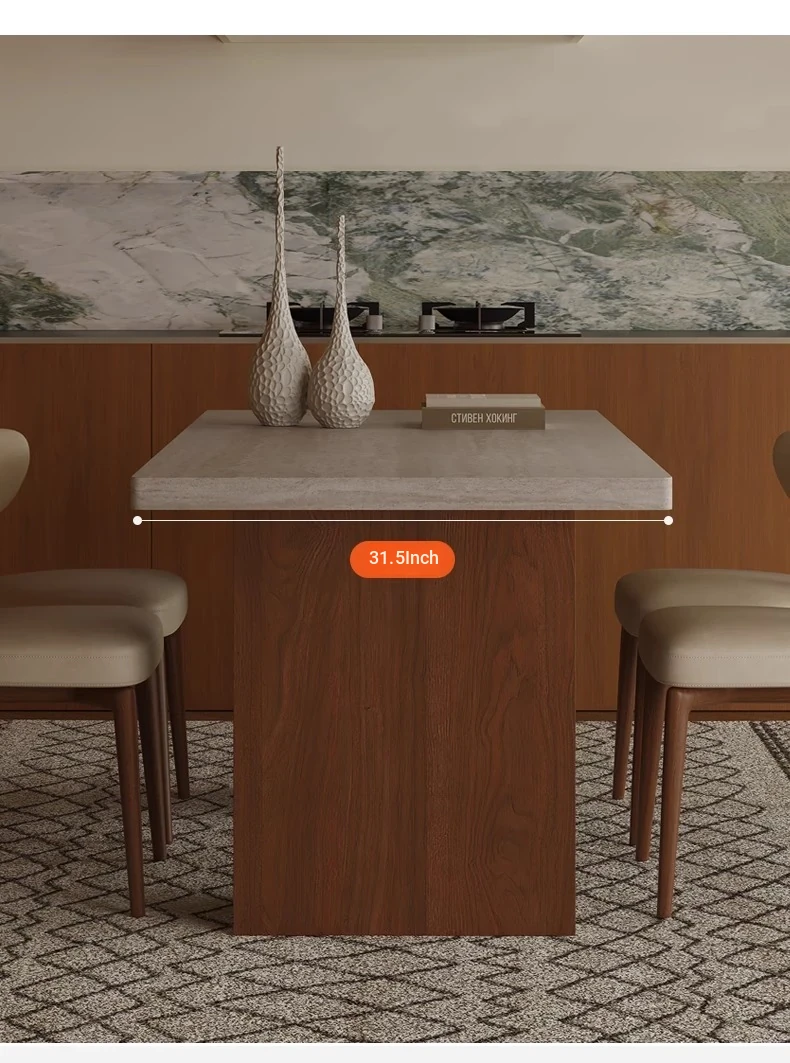 Vintage Solid Wood Dining Table Set with Hollow Stone Surface - Simple Rectangle Design for Small Spaces, Perfect for Home Use