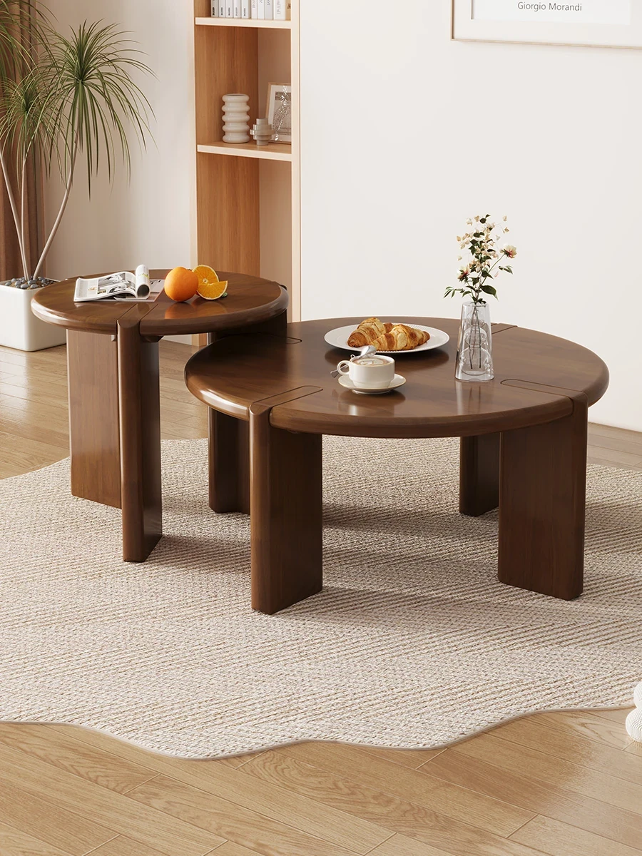 Japanese Solid Wood Coffee Table for Small Living Rooms – Stylish Round Side Table in Natural Finish, Perfect for Cozy Spaces, Ideal for Sofas and Small Areas