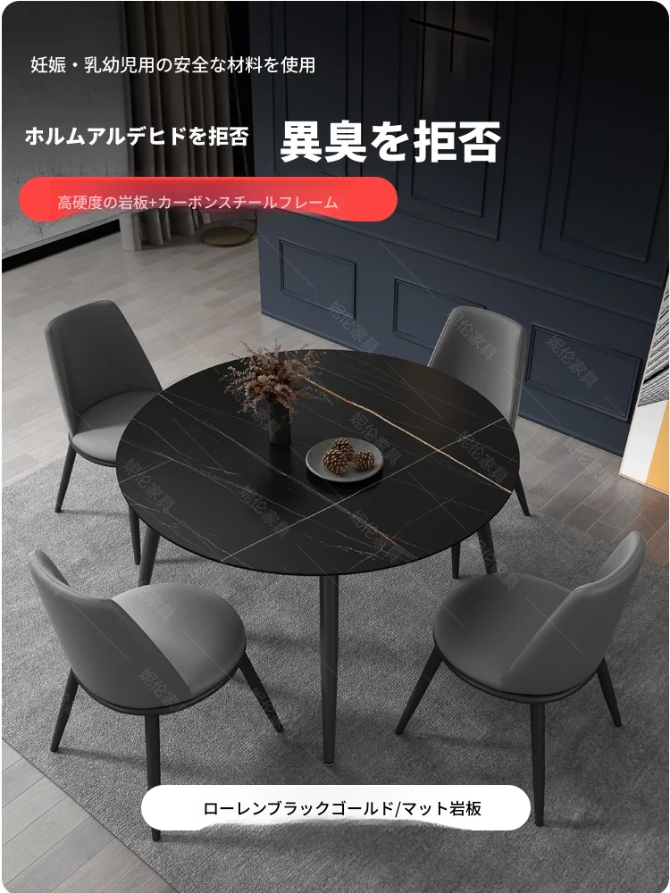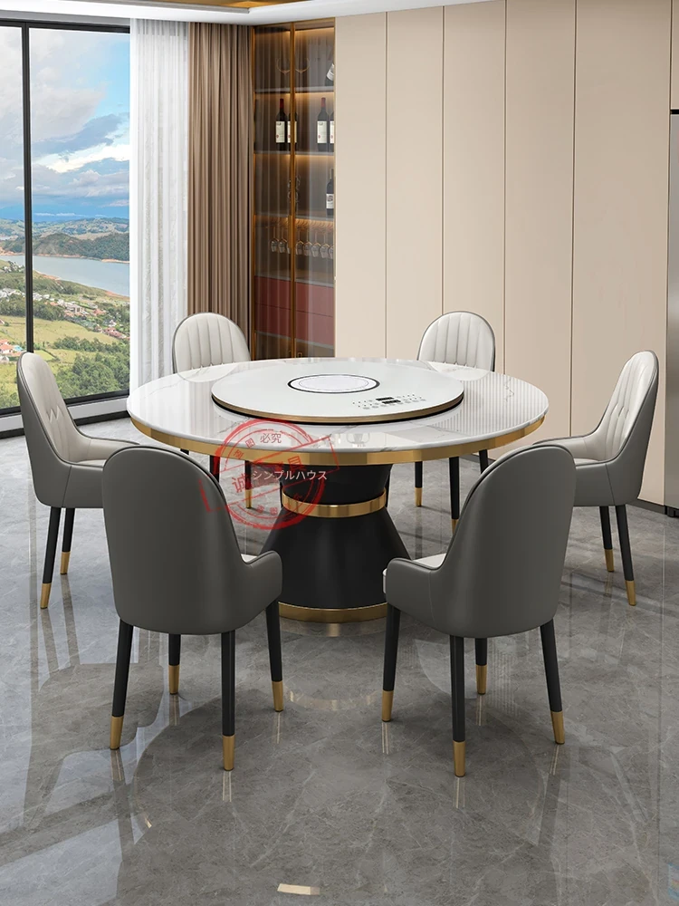 軽やかな高級感!多機能電動回転テーブル付き岩板ダイニングテーブルセット - 家庭用・小型スペースにぴったりの円形電磁調理器付きリビングダイニングテーブル!