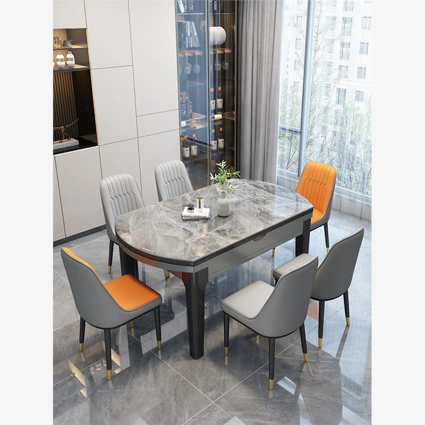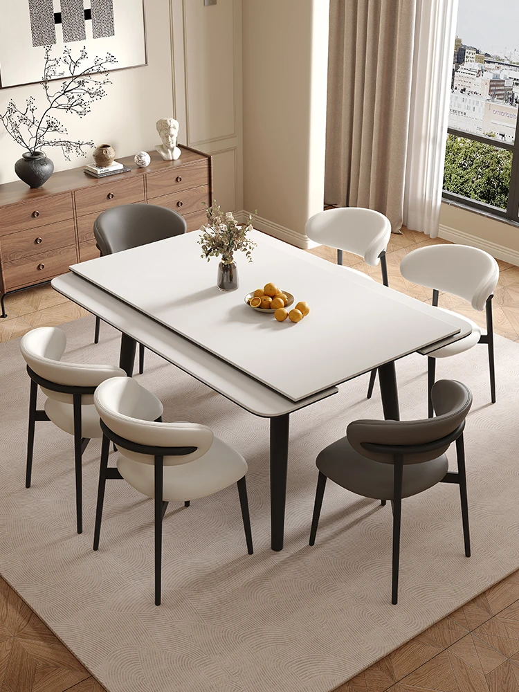 送料無料!新疆産の光沢仕上げの岩板ダイニングテーブルセット。伸縮可能な折りたたみ式、モダンでシンプル、軽やかなラグジュアリー感が魅力。小型住宅にもぴったりの変形自在なデザイン!