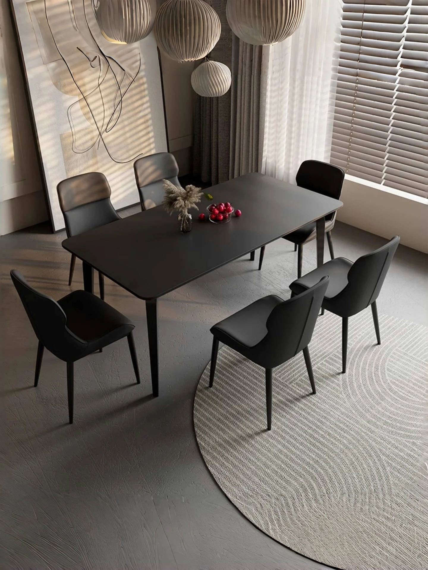 人気の現代ミニマリストデザイン!純黒のストーンテーブルとエレガントな象脚が特徴のダイニングセット。軽やかでラグジュアリーな雰囲気を演出し、家庭での食事を特別なひとときにします!