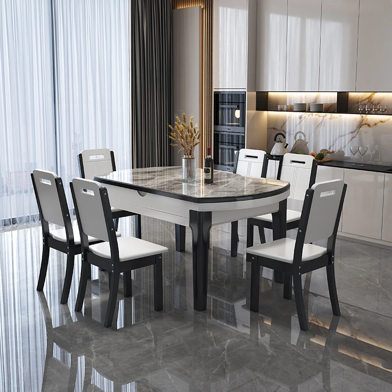 新疆送料無料!現代的でシンプルなデザイン、軽やかなラグジュアリー感を持つ折りたたみ式伸縮ダイニングテーブル&チェアセット。使い勝手抜群の可変型円形テーブルで、家族や友人との食事をより楽しく!